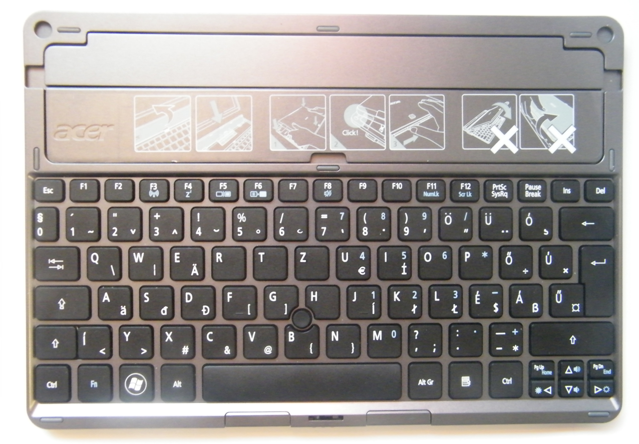 Ami abszolút pozitívum, az a teljesen magyar nyelvű billentyűzetkiosztás, amelynek köszönhetően nem kell lemondanunk az ékezetes betűk könnyű használatáról sem. A gombok száma megegyezik a szinte bármelyik netbook klaviatúráján megtalálható gombok számával. A billentyűk halk járásúak, jó nyomogatni őket. Ahogyan említettük, a touchpad kimaradt a kiegészítőből, az egér szerepét az érintőképernyő mellett a G, H és B gombok közép beszorított pöcökegér látja el, amely ismerős lehet a ThinkPad készülékekről. A space gomb alatt helyezkedik el a hozzá tartozó két gomb is. Aki eddig normális egeret, vagy touchpadet használt, annak egy kis időbe beletelik majd, mire átszokik a pöcökegérre, de a régi IBM-es felhasználóknak ismerős lesz az élmény.
