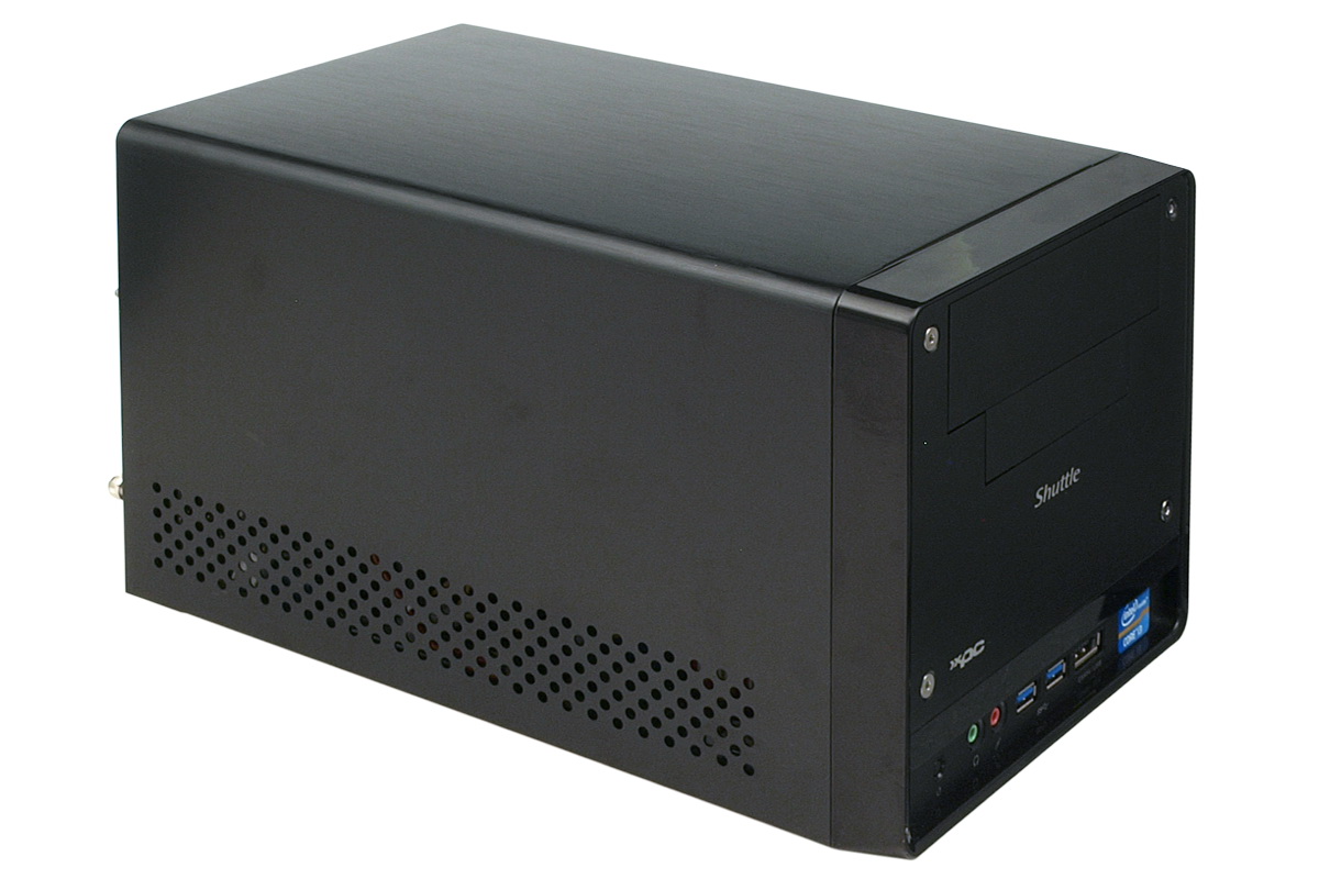 A Shuttle gépe egy egészen nagy (mondhatni, indokolatlanul nagy) dobozban érkezett hozzánk, amely a gép mellett semmi extra hardvert nem tartalmazott, csupán telepítő CD-t, tápkábelt és néhány csavart találtunk a csomagolásban. Maga a PC alap a szokásos méretű – aki látott már korábban Shuttle barbone-t, az tudja, hogy a gyártó a mérettel nem nagyon szokott variálni, ami eltér a konfigurációk esetében az jobbára az előlap illetve az alaplap.