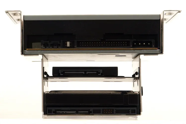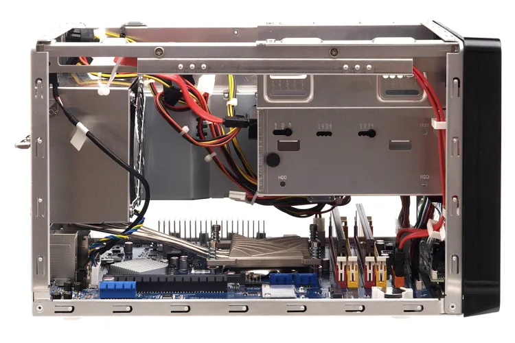 Az optikai meghajtó és a merevlemezek beépítése a szerelvény kiemelése után (két csavar tartja) gyerekjáték, az előlapi takarókat pedig egyszerűen ki tudjuk lökni, ha arra szükségünk lenne. A szükséges kábelek mérete pontos, éppen akkorák, hogy be tudjuk őket pattintani a helyükre. A PCIe foglalatba illeszthető kártyák hátoldali nyílását egy-egy csavart tartja a helyén, ez a megoldás sokkal igényesebb, mint sok olcsó barebone konfiguráción a hajlítós-kitörős verzió. A memóriafoglalatokhoz a borítás levétele után azonnal hozzáférhetünk, így a modulok bepattintása sem nehéz feladat. Az egyetlen dolog, amire vigyázni kell, az a hátoldalon lévő néhány extra nyílás, ezeket sajnos a hajlítós-kitörős módszerrel kell eltávolítanunk.