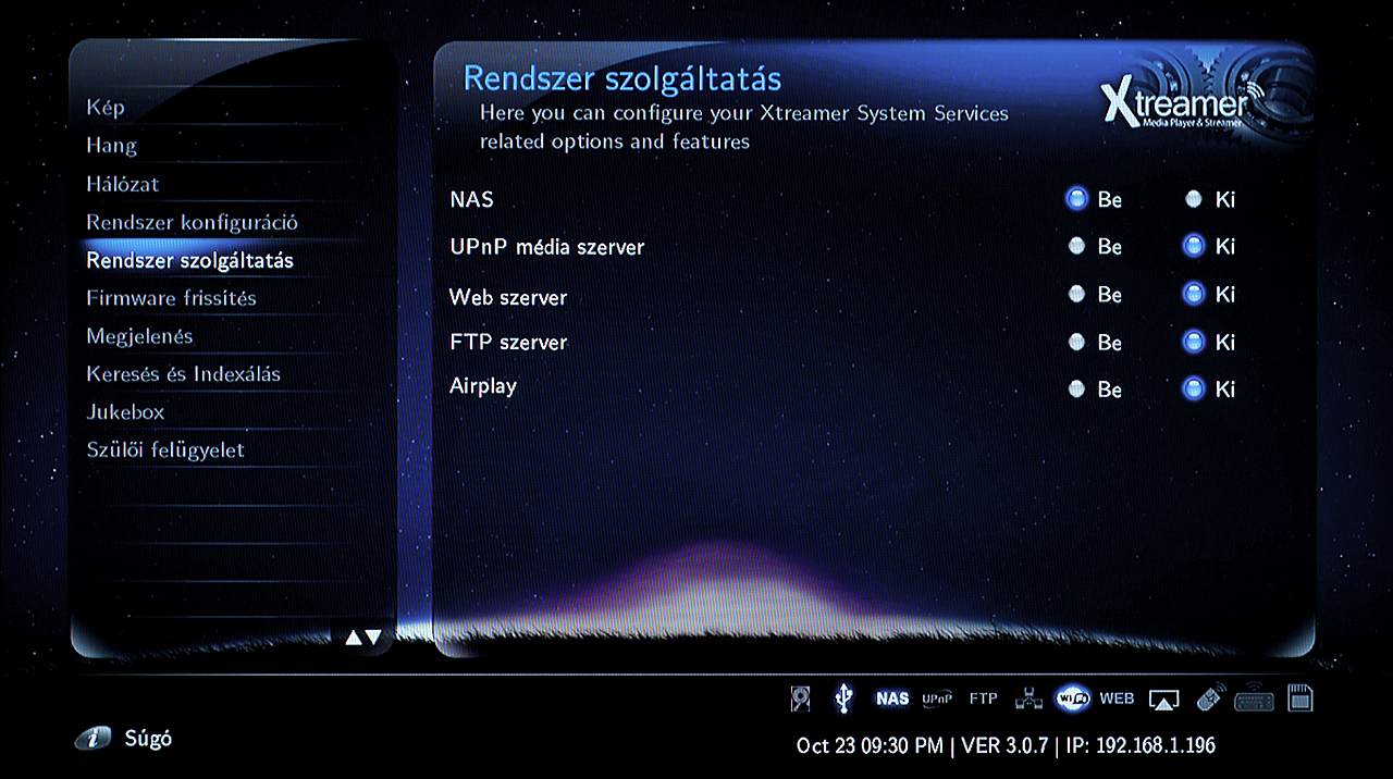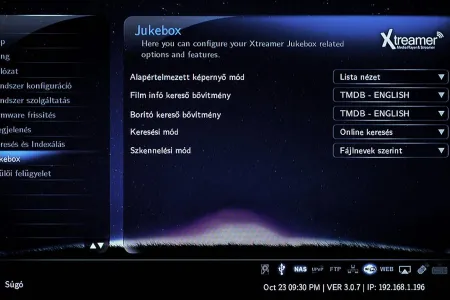 Ez utóbbi egyébként az a része a firmware-nek, ahol még bőven van fejlesztési potenciál. Az eredeti terv valószínűleg egy, az XMBC-hez hasonló megoldás elkészítése volt, ami a fájlnevek alapján a beállított netes oldalak segítségével egy látványos, a filmekhez plakátokat és alapvető információkat is csatoló felületet állít elő. A dolog nagyjából működik is, de csak ideális körülmények esetén, ami azt jelenti, hogy a fájlokat, könyvtárakat rendesen el kell neveznünk, a netről letöltött, esetleg külön megjegyzéseket (720p, ESiR, HunDub, ilyesmi) is tartalmazó fájlnevek már megzavarják az algoritmust, és ezekhez gyakran nem talál semmilyen adatot a Jukebox. Szerencsére a probléma nem komoly, remélhetőleg az Xtreamernél dolgoznak is a megoldáson.