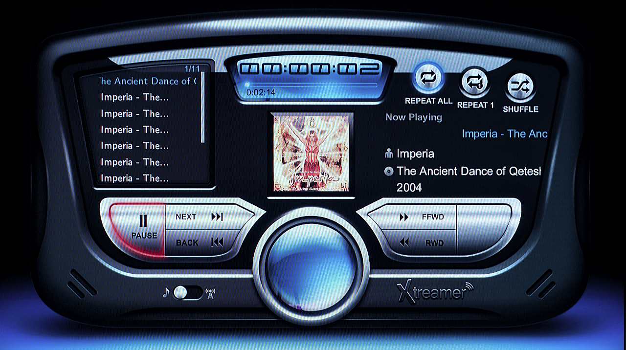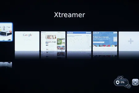 Ami a két másik fontos képességet, a zene- és fotólejátszást illeti, ezekkel is elégedettek voltunk: az előbbinél egy kifejezetten impozáns kezelőfelületet kapunk, ami sokkal jobban mutat a tévén, mintha csak a szám címe és a borító látszódna. Ez a felület jelenik meg webrádiók hallgatásakor is.