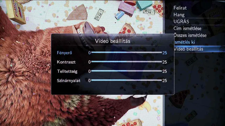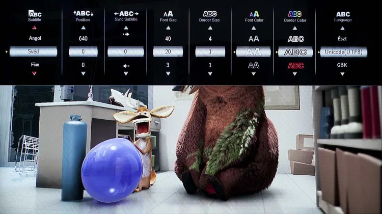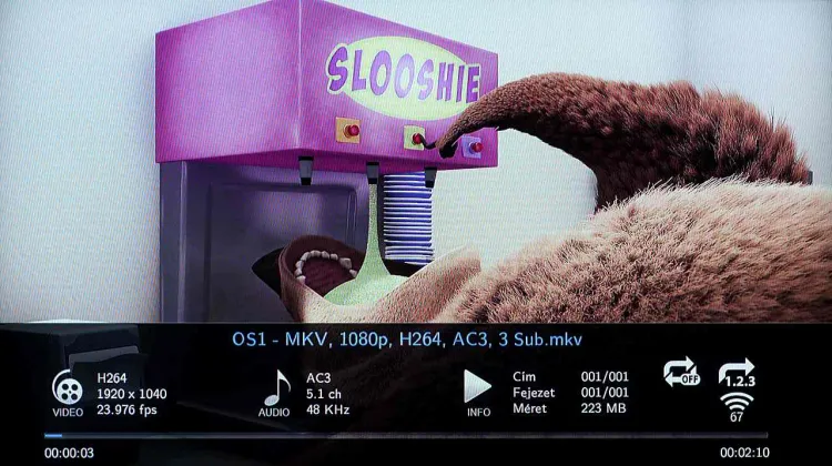 Filmnézés közben az összes fontos szolgáltatás rendelkezésre áll: egy igen szép képernyőt kapunk például a fájllal kapcsolatos fontosabb információkról, és hasonlóan jól használható felületen tudunk hangsávot és feliratot választani. Az utóbbinál egyébként a nyelv mellett a méret, elhelyezkedés, szín és időzítés is állítható. További extra, hogy a képet nagyíthatjuk, ráadásul nemcsak méretarányosan: a méretarány változtatható, valamint a kép is eltolható, egyfajta manuális Pan&Scan funkcióként.