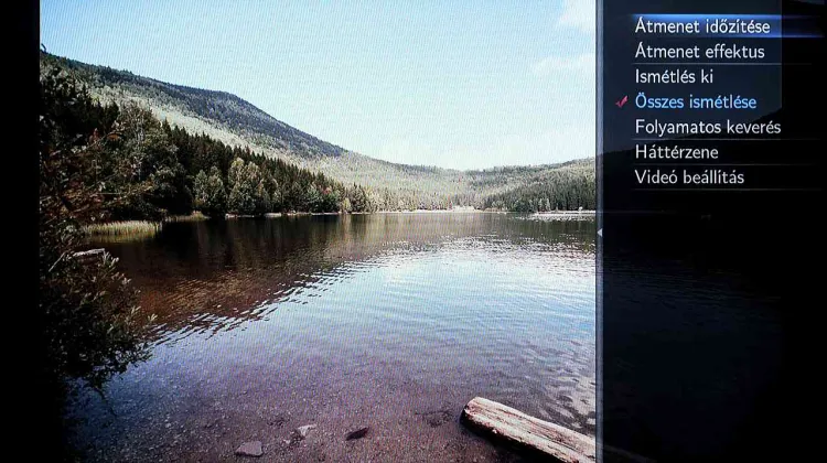 A képlejátszás a szokásos extrákkal bír: beállítható, hogy az egyes fotók meddig legyenek a képernyőn és, hogy sorrendjük milyen legyen, választhatunk többféle áttűnés között és persze a háttérzene is bekapcsolható.