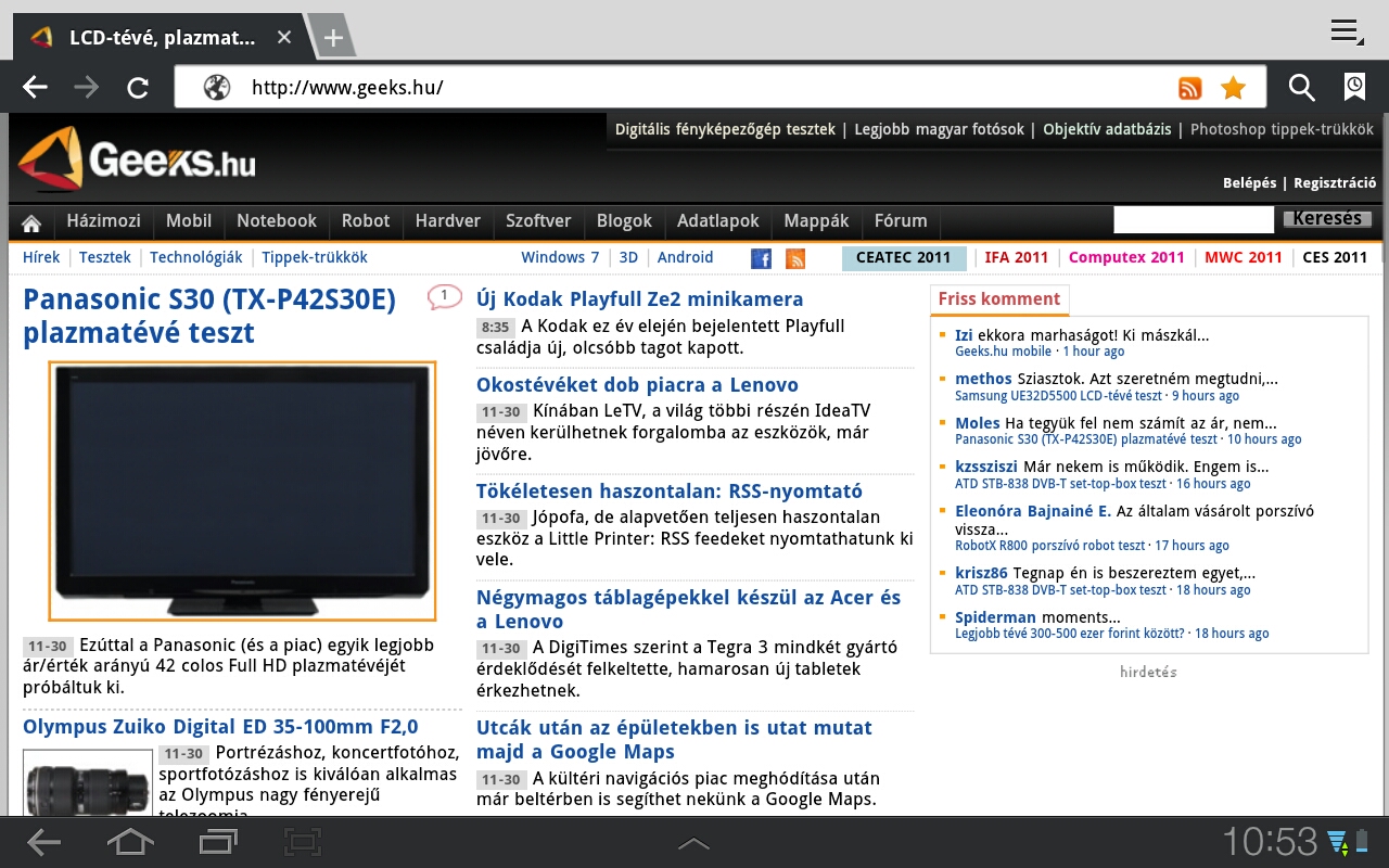 Samsung Galaxy Tab 10.1 (P7500) táblagép teszt