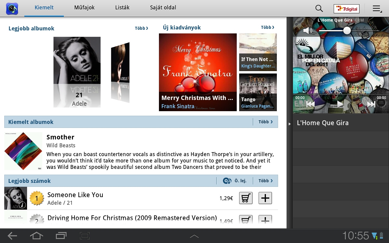 Saját zenetár is elérhető a készüléken, ahonnan zeneszámok vásárlására nyílik lehetőség. A Music Hubban rengeteg fizetős dal tölthető le, leginkább a 0,99 eurós árak jellemzőek a kínálatra. Az adott számokba bele is tudunk hallgatni még mielőtt megvásárolnánk őket.