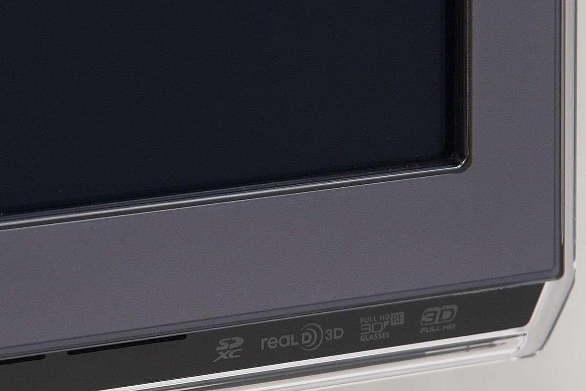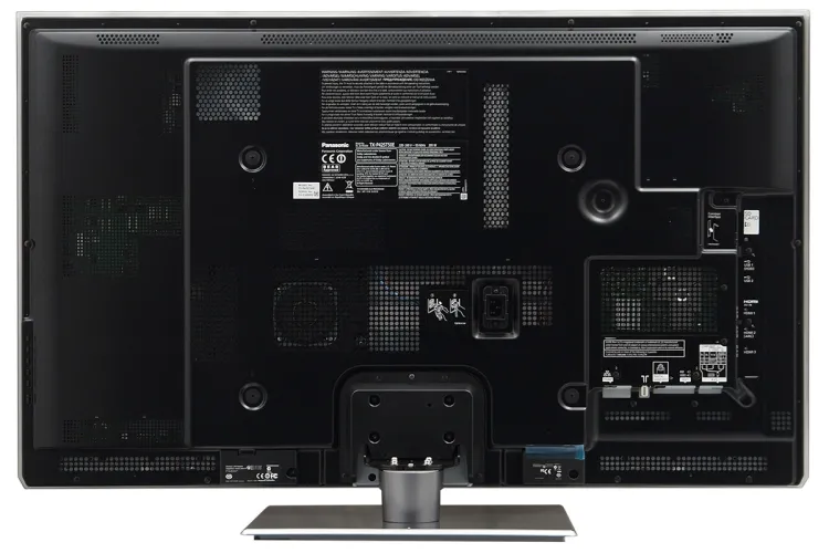 A VIERA logó mellett a tévére a Panasonic márkajelzése is felkerült, szintén a szokásos helyre, a káva alsó részére, középre. Ugyanitt, de jobb oldalt négy további logót találunk, amelyek a tévé egyes funkcióira, például az SD-kártyaolvasóra, és a 3D képre (és hangra) utalnak. A gombok a jobb oldalra kerültek, ami a gyártó LCD-tévéivel ellentétben tényleg oldalsó pozíciót jelent, így nem nehéz elérni őket. Érdekesség, hogy a Panasonic a tavaly még alapnak számító hardveres ki-bekapcsoló gombot lecserélte szoftveresre – a méréseink alapján azonban a tévé kikapcsolt állapotban gyakorlatilag nem vesz fel áramot, így ez nem befolyásolja jelentősen a hónap végi villanyszámlát.