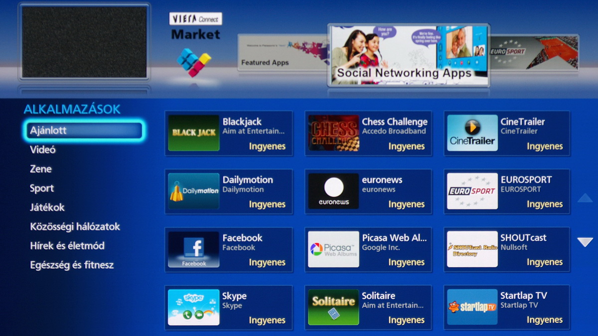 A Panasonic valamennyi tévéjébe ugyanazt az okostévé platformot építi be, a japán gyártó nem szelektál közép- felső- és csúcskategória szerint. A felület közepesen gyors, de sajnos a VIERA Connecttel alapvetően nem a sebesség a probléma, hanem a lokális tartalom hiánya: a StartLapTV-n kívül hazai alkalmazás se előre telepíve nincsen, se alkalmazásboltból nem telepíthető.