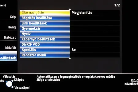 Menü, távirányító