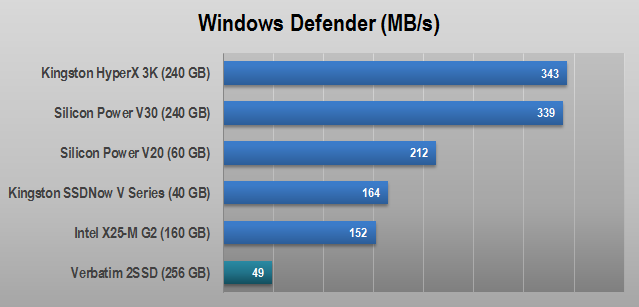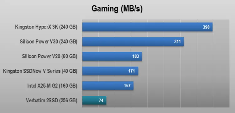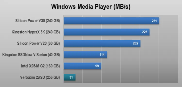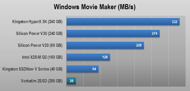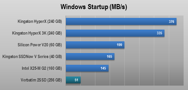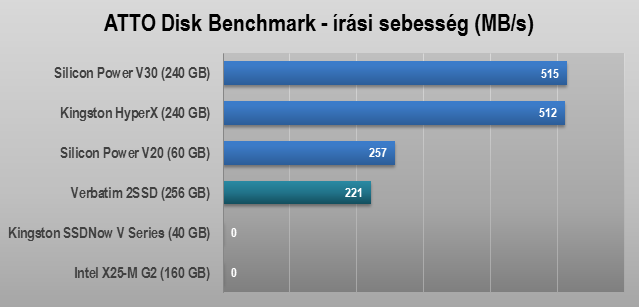 A grafikonokon jól látszik, hogy a Verbatim majdnem minden esetben az utolsó helyek egyikére kvalifikálta magát. Ez persze még így is azt jelenti, hogy egy merevlemezről váltva nagy lesz a sebességbeli ugrás, főleg az OS betöltése és a programok indulása lesz gyorsabb, azonban az is teljesen egyértelmű, hogy a növekedés nem lesz akkora, mint egy olyan meghajtó esetében, amelyik a SATA 3 Gbit/s-os interfész határait a végletekig ki tudja használni.