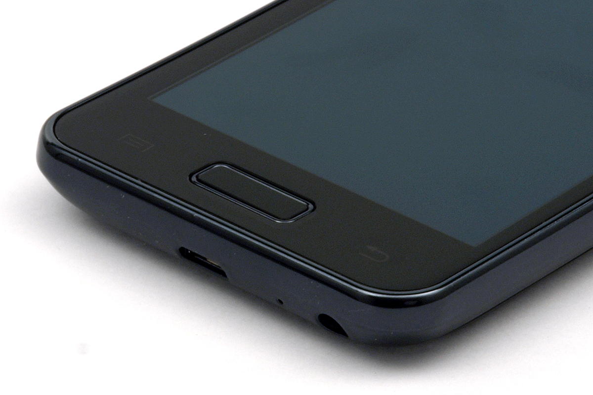 A kijelzőnek több érdekessége is van, rögtön például mindjárt az, hogy egy AMOLED panelről van szó, de erre részletesebben a következő oldalon térünk majd ki. A dizájn szempontjából inkább az a fontos, hogy a panelt Corning Gorilla Glass védi, valamint, hogy a Samsung Galaxy Nexushoz hasonlóan a telefon előlapja enyhén homorú. A kijelző felett a szokásos elemeket találjuk: a Samsung logót és a hangszóró nyílását, valamint az előlapi kamerát. A kamera és a hangszóró rácsa közötti terület alig látható módon a közelségérzékelőt és a fénymérő szenzort rejti.