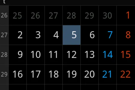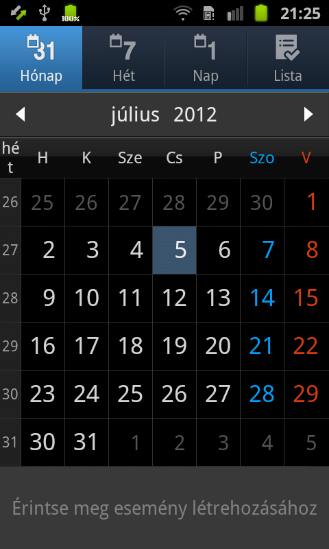 A határidőnapló havi, heti és napi nézetet ajánl fel, ezen kívül rendelkezésre áll egy áttekintő képernyő is, amely csak a teendők listáját tartalmazza. A program érdekessége, hogy lehetőséget ad az időzóna zárolására, ami a sokat utazóknak lehet hasznos, mert a telefon nem fogja összevissza variálni a következő események időpontját attól függően, hogy éppen melyik országban (melyik kontinensen) tartózkodunk. A zárolást a teljes naptárra vagy csak egy adott eseményre is kérhetjük (utóbbi esetben kézzel állíthatjuk be az eseményre vonatkozó időzónát).