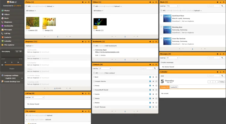 Érdemes ezeken kívül megemlíteni még a Hírek és időjárás programot, valamit a Kies Air alkalmazást is – ez utóbbi lehetővé teszi, hogy a telefonra a helyi hálózaton lévő számítógép böngészőjéből kapcsolódjunk, így a rajta lévő adatok kezelését USB kábel nélkül is megoldhatjuk. Ez elsősorban akkor lehet hasznos, ha a telefon kábelét nem akarjuk magunkkal vinni, de esetenként előfordul, hogy mondjuk a munkahelyen szeretnénk egy-egy zenefájlt vagy fotót a mobilra felmásolni.