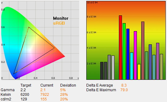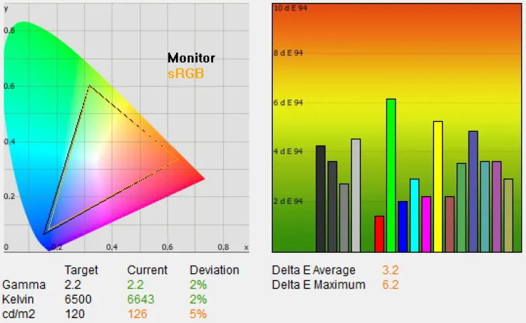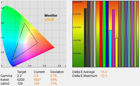 | Fekete fényerőssége kalibráció után | 0,12 cd/m² |