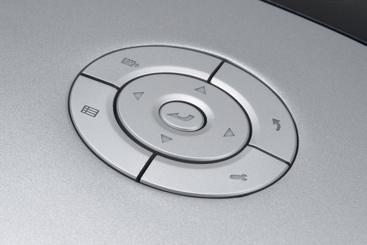 A felső gombok egyébként csak a navigációra szolgálnak, bekapcsolni a fedélnyitó alatt lévő fekete gombbal lehet a készüléket.