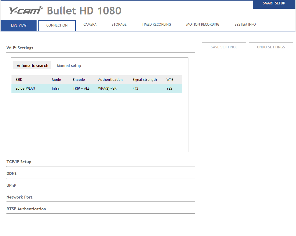 A kamerát az Y-Cam alapvetően arra tervezte, hogy vezeték nélküli hálózaton használjuk (802.11n, 2,4 GHz), a kezdeti beállításokat azonban mindenképpen vezetékes LAN segítségével kell elvégeznünk. Ez praktikusan csak annyit jelent, hogy mielőtt a WiFi hálózatra kapcsolódnánk, a kamerának nevet kell adnunk és konfigurálni kell az IP-címet is (választhatunk automatikus lekérést DHCP-vel). Ha ezzel megvagyunk, akkor tudunk belépni a webes felültre, amely lehetővé teszi azt is, hogy kiválasszuk, melyik WiFi hálózatra szeretnénk csatlakozni. Tesztünk alapján a kamera szoftvere sajnos nem működik minden böngészőben megfelelően: Chrome, Firefox és IE9 alatt nem volt problémánk, azonban Internet Explorer 10 alatt nem jelent meg minden információ és minden beállítási lehetőség.
