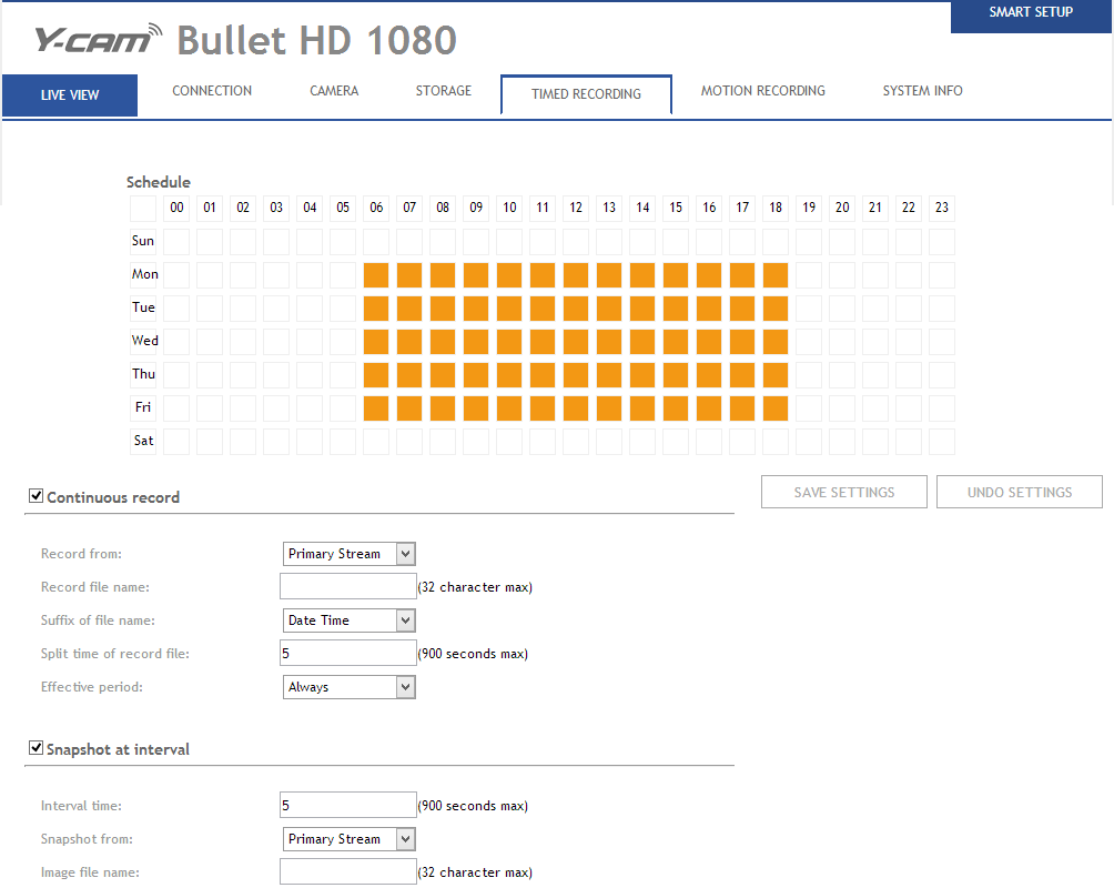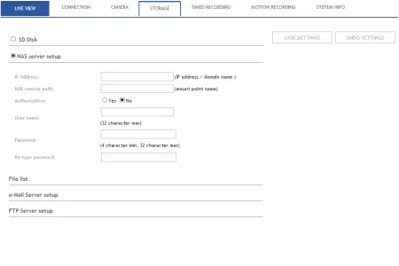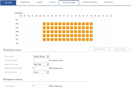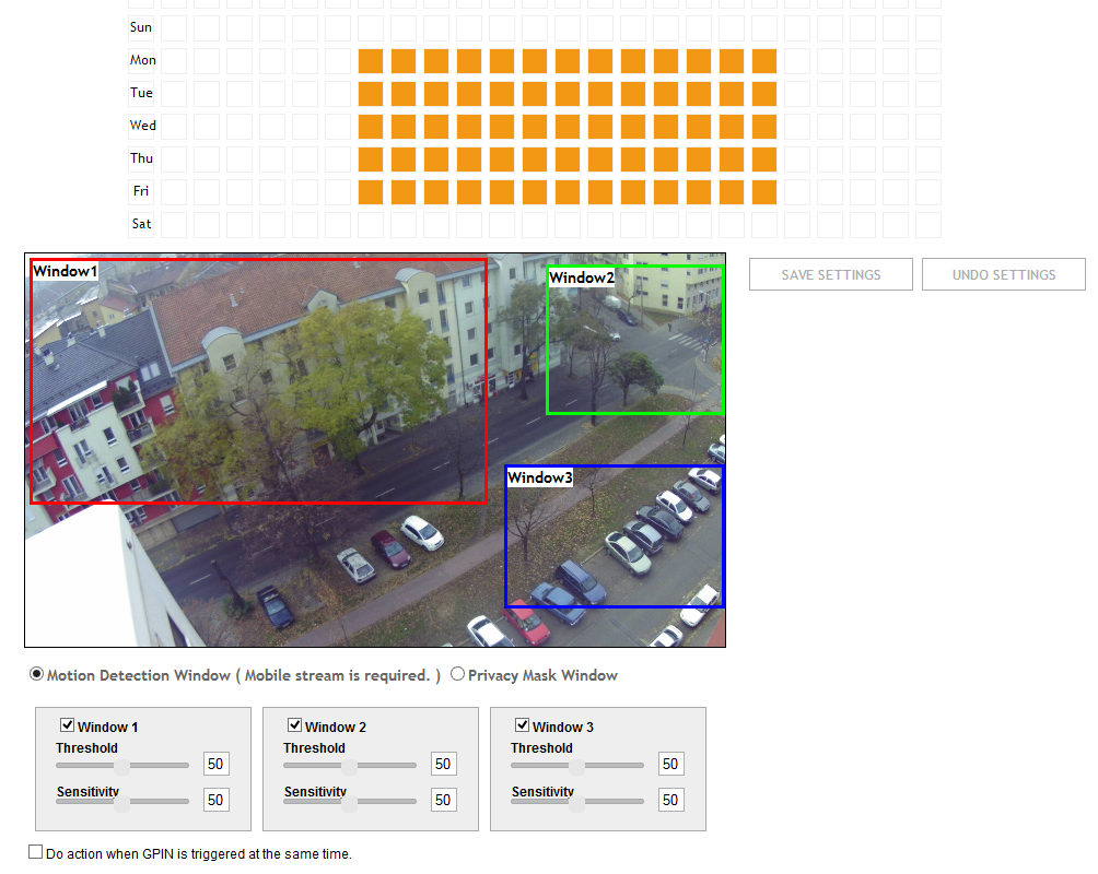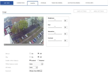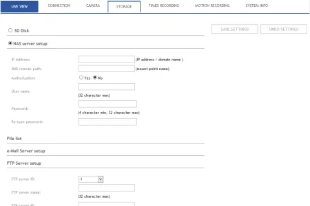 A felvételek tárolásához a már korábban említett microSD-kártya mellett a hálózaton lévő NAS szervert is használhatunk (az egyiket mindenképpen választani kell), és van arra is mód, hogy a fájlokat e-mailen keresztül elküldjük vagy FTP-re feltöltsük. Ha nem akarunk folyamatos rögzítést, akkor felvételi időzítőt is használhatunk. Ez sajnos nem túl jól programozható, mert csak arra ad lehetőséget, hogy minden nap ugyanabban az időben kapcsoljuk ki-be a kamerát. A megfigyelési időszakon belül viszont kérhetünk folyamatos felvételkészítést és/vagy azt is, hogy a kamera megadott időközönként pillanatképeket készítsen. Emellett természetesen az e-mail küldés és az FTP feltöltés is él, és minden esetben külön kiválasztható, hogy melyik profil alapján alkotott streamet kérjük. Emellett van mozgásérzékelés funkció is, amely három különböző zónát képes figyelni; az érzékenység mindhárom esetben külön beállítható, és akár még azt is megadhatjuk, hogy riasztás esetén felvétel vagy sorozatkép készüljön és, hogy ezt a kamera elküldje-e e-mail címre vagy FTP-szerverre.