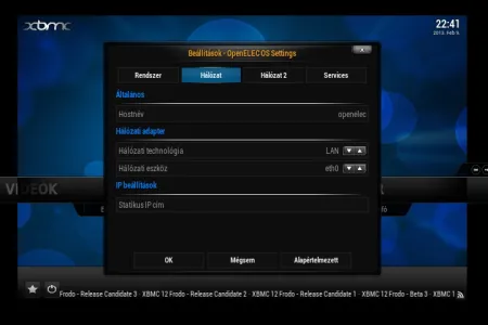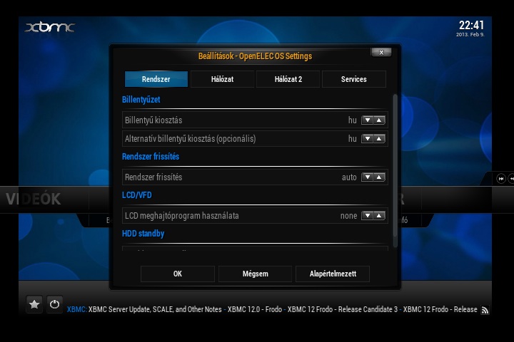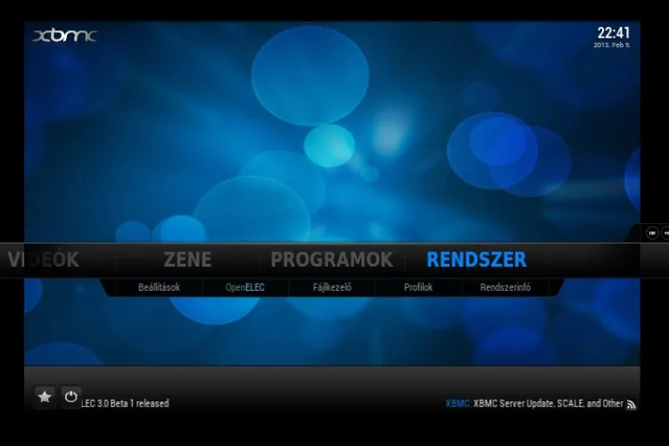 Az OpenElec képernyőjén a magyar nyelv kiválasztása után helyesen jelennek meg a magyar menü ékezetes karakterei is, ami sajnos még mindig nem magától értetődő dolog (persze nem is biztos, hogy ildomos egy ilyen ingyenes rendszernél ilyet elvárni). Az operációs rendszer beállításait az OpenElec fejlesztői a Rendszer menü OpenElec menüpontja mögé rejtették. A beállítás bár nem annyira részletes és mindenre kiterjedő, mint pl. a Raspbmc esetén, de tulajdonképpen minden beállítható itt is, amire szükségünk lehet.