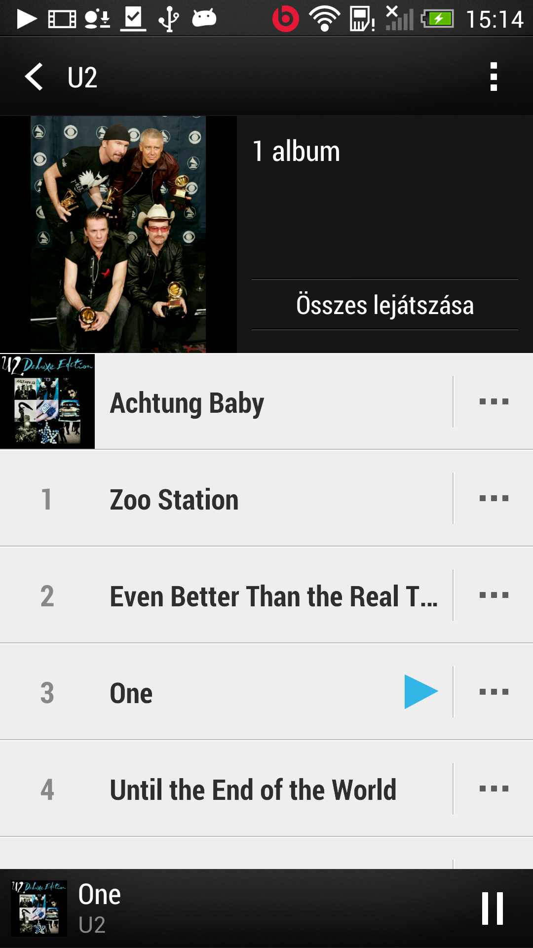 A SoundHound a zeneszámok „hallás utáni” felismerésére képes, találat esetén pedig információkat is kérhetünk a dalról, valamint kereshetünk dalszövegre illetve kapcsolódó YouTube videókra is. A zenelejátszóhoz nem tartozik equalizer, viszont a beatsaudio a (sztenderd) menüből aktiválható. A HTC-től megszokott módon a zene widget a lezáró képernyőn is látszik – és természetesen használni is tudjuk itt. A beállítások között a hálózaton elérhető DLNA klienseket is megkereshetjük, illetve csatlakoztathatunk Bluetooth hangszórókat is. Akinek esetleg nem jönne be a HTC-s Zene, annak jó hír, hogy a Google-féle Play Zene is megtalálható a HTC One-on.