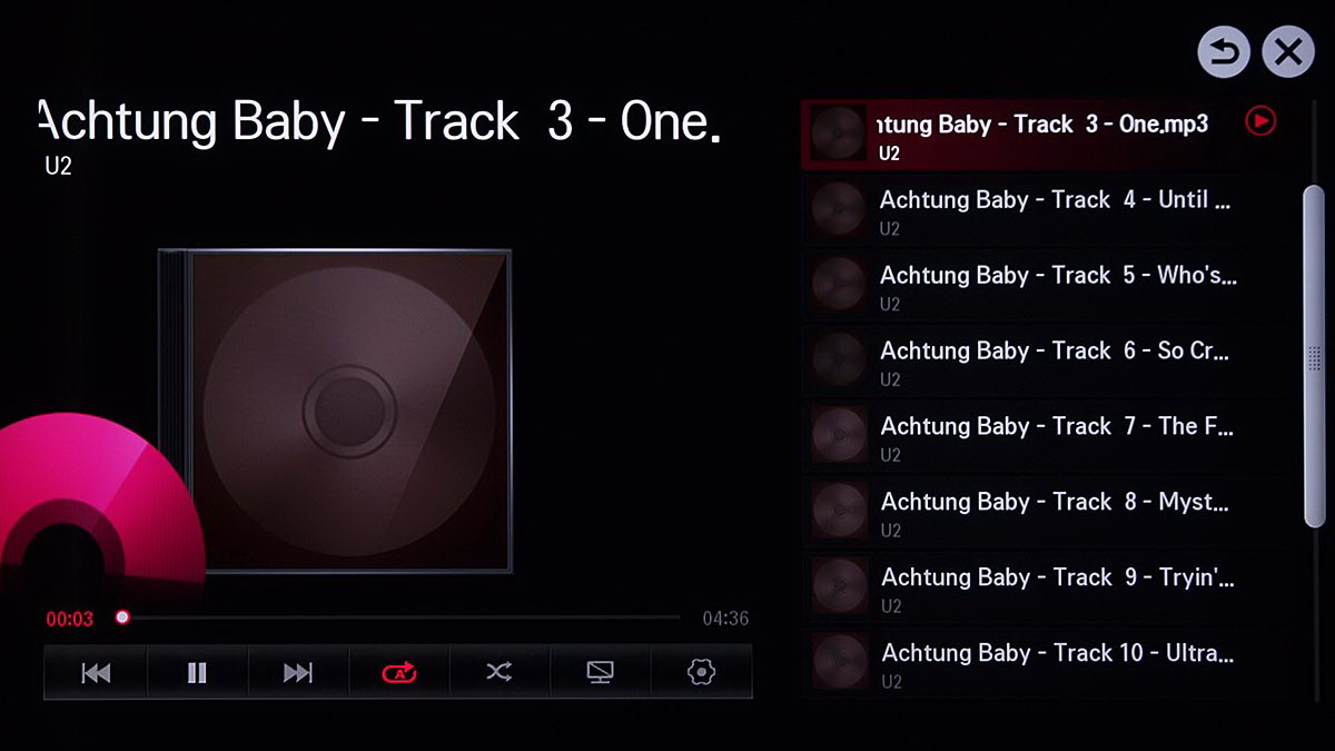 A SmartShare a zenéket az átlagosnál jobban kezeli, hiszen a számokat előadó, album és műfaj alapján is tudja rendezni. A csoportosítás gyors is, igaz, ettől még nem lesz nagyon jól használható a tévé zenehallgatásra, mert a távirányítóval továbbra is nehézkes egy több ezer számot tartalmazó gyűjteményben mozogni. A formátumtámogatás az MP3, OGG és WMA konténerekre terjed ki.