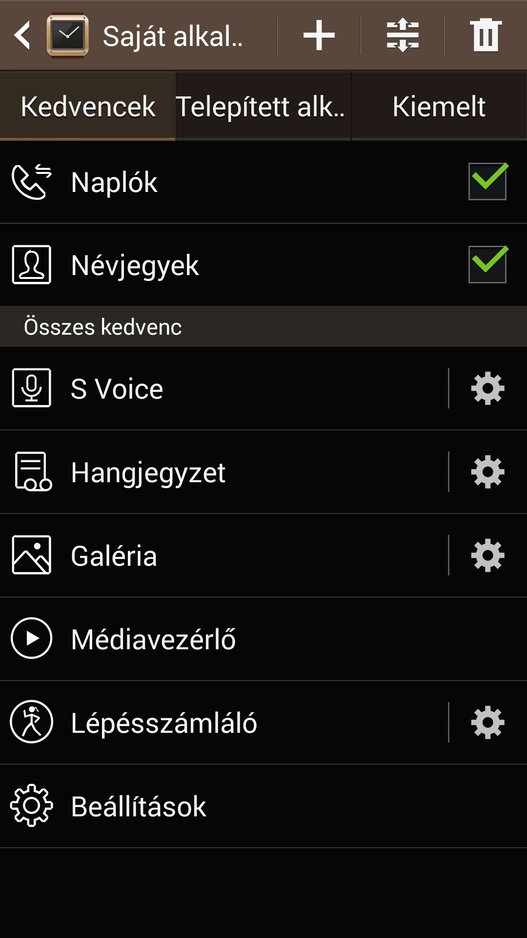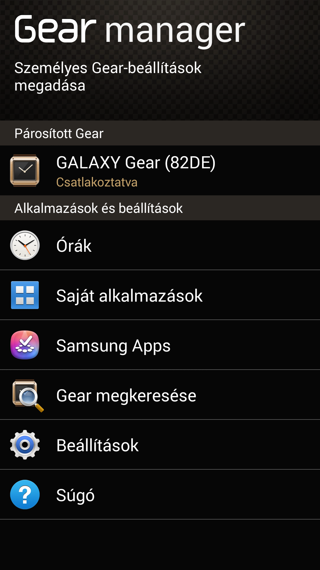 Alkalmazásból egyelőre sajnos nagyon kevés van, számuk 70 körüli, de a Samsung valószínűleg gőzerővel dolgozik azon, hogy a kínálat gyorsan bővüljön majd. És itt érdemes kitérni egy másik érdekességre, mégpedig arra, hogy néhány alapvető beállítás (pl. fényerő) kivételével a Galaxy Gear menedzselését a társított okostelefonon vagy táblagépen, a Galaxy Gear Manager alkalmazás segítségével tehetjük meg. Ez az app szolgál többek között az órán lévő alkalmazások telepítésére, beállítására és frissítésére, az óra számlapjának beállítására (és annak testreszabására, például a parancsikonok kiválasztására), a kártyák sorrendjének megváltoztatására.