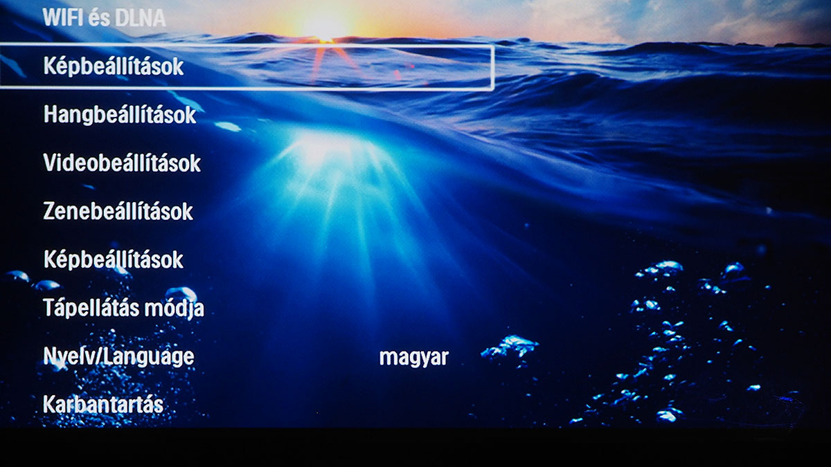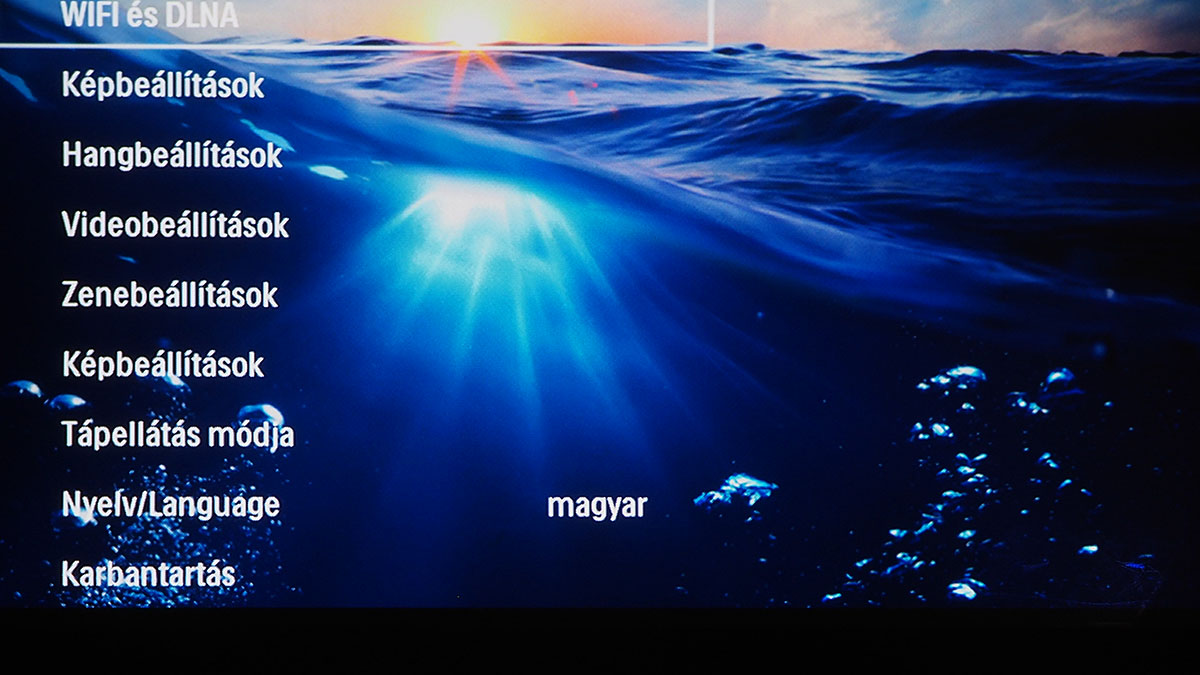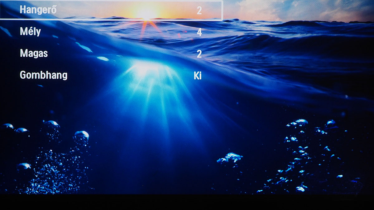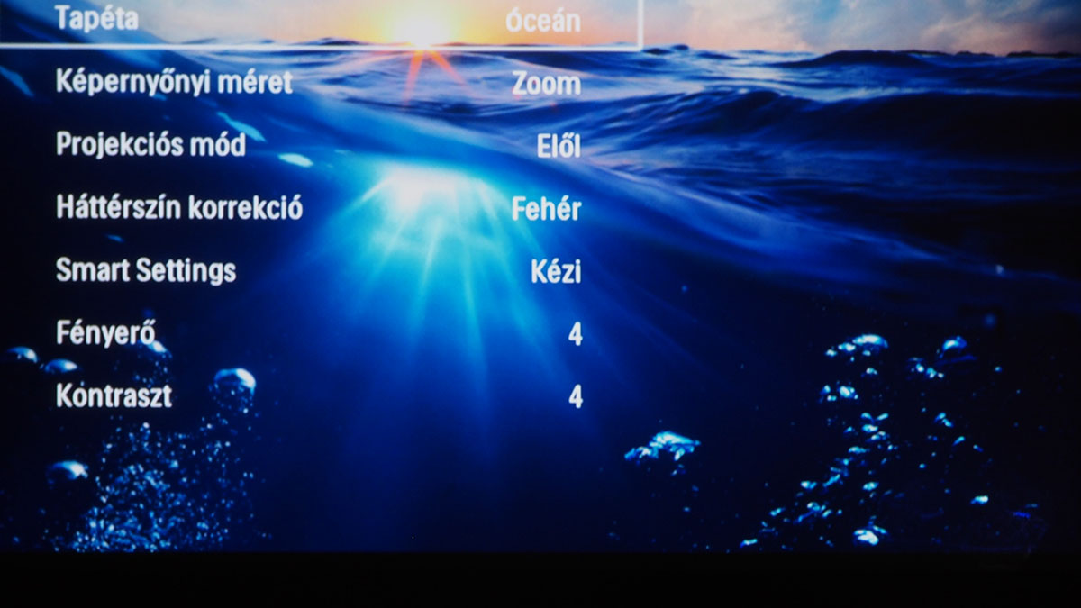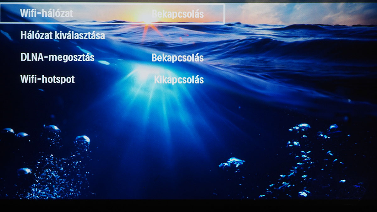 A menüben (és úgy egyáltalán) a projektor tetején lévő tapipad segítségével és a távirányítóval is tudunk navigálni, sőt, előbbinek van egy Androidra letölthető digitális verziója is, ami akkor használható, ha a projektor és az okostelefon ugyanarra a WiFi hálózatra csatlakoznak. A három verzió közül sajnos messze a mindig kéznél lévő tapipad az, amelyik a legkevésbé használható, mert a felület érzékenysége túlságosan is gyenge, viszont adott esetben mégis a használatára kényszerülünk, például akkor, amikor a virtuális billentyűzet gombjait kell nyomkodnunk. Erre többek között akkor lehet szükség, ha WiFi hálózatra kapcsolódnánk.