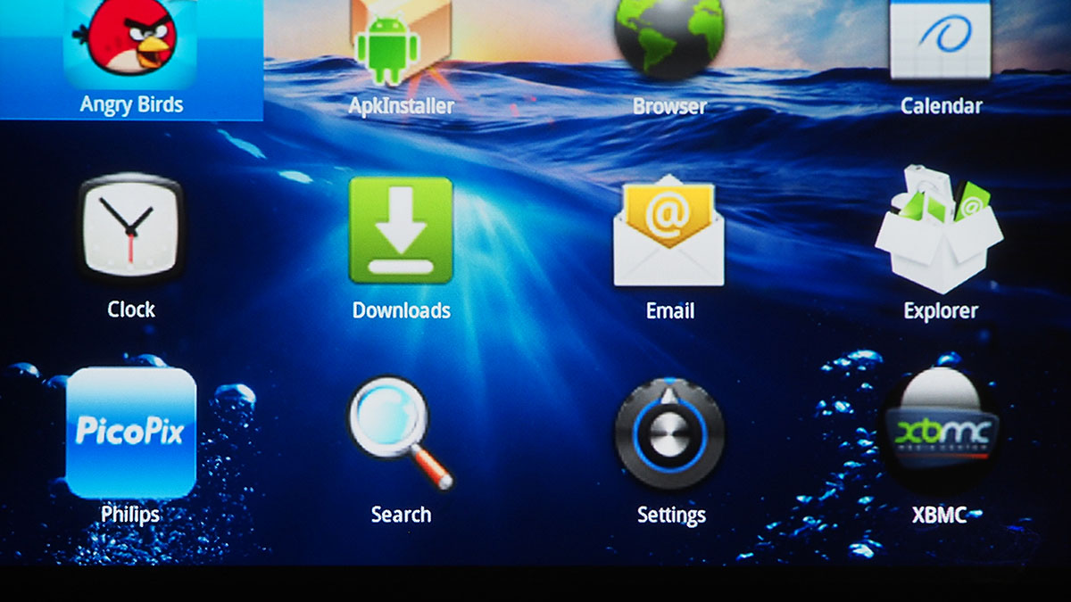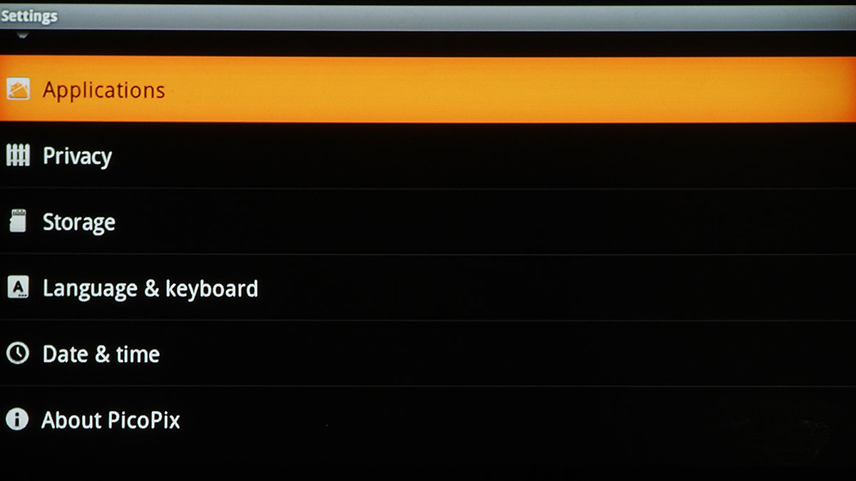 A Philips PicoPix PPX3610 legnagyobb érdekessége az, hogy teljes értékű Android is fut rajta, igaz, csak a 2.3.1-os verzió, és Google Play alkalmazásbolt nélkül. Azt egyelőre nem lehet tudni, hogy a Sagemcom tervezi-e az OS frissítését – ehhez az SoC-hez egyébként az Android 4.0 az utolsó elérhető gyártói ROM, tehát a váltásra elvileg lenne mód. Az OS azonban még azzal együtt is, hogy nem egy mai darab, kiválóan alkalmas arra, hogy a projektor képességeit bővítsük – és az alkalmazásbolt hiánya szerencsére nem jelenti azt sem, hogy az extra appokról teljesen le kellene mondanunk.