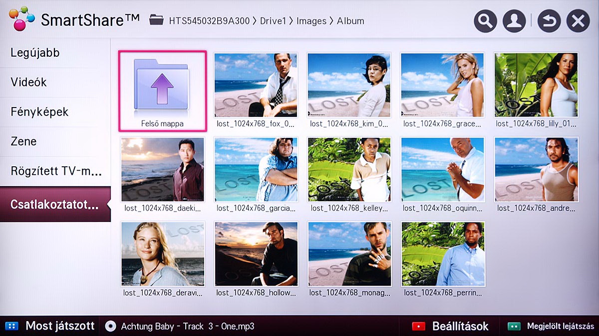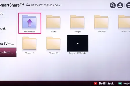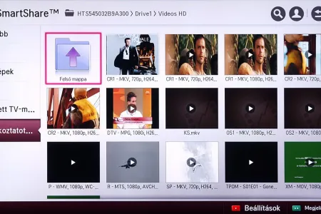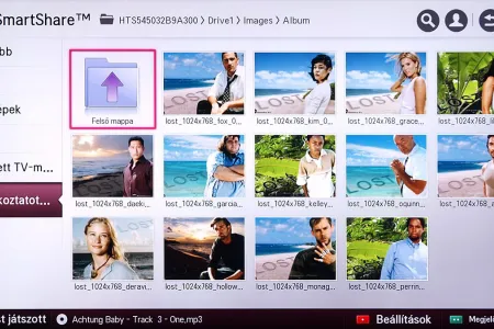A médialejátszó a Home képernyőről indítható el, és SmartShare névre hallgat. Az LG a különféle források kezelését kiválóan oldotta meg, mert gyakorlatilag a forrástól független, hogyan használhatjuk a médialejátszót. A USB-re csatlakoztatott merevlemezek, a mobil eszközök és a hálózaton (DLNA kapcsolat segítségével) elérhető eszközök (PC, NAS, stb.), mind ugyanazt a felületet használják, sőt, az LG megoldotta azt is, hogy egyszerre több adathordozót is használhassunk. A felület ennek megfelelően változott, nem is kicsit.