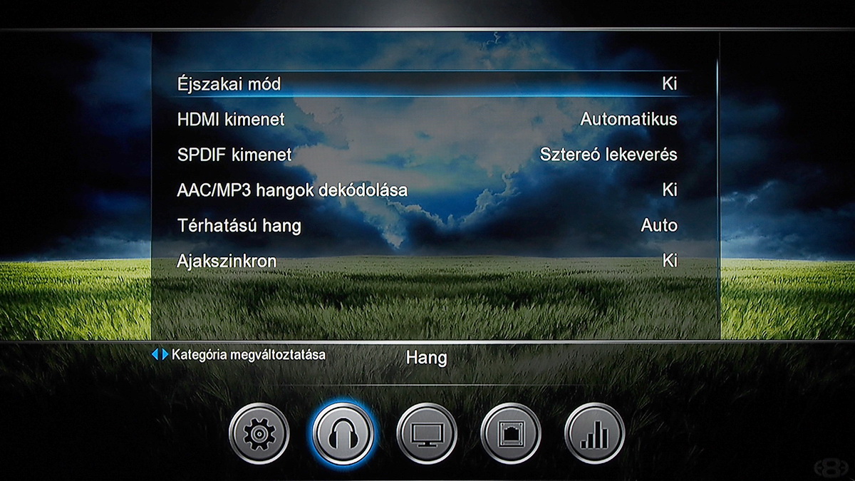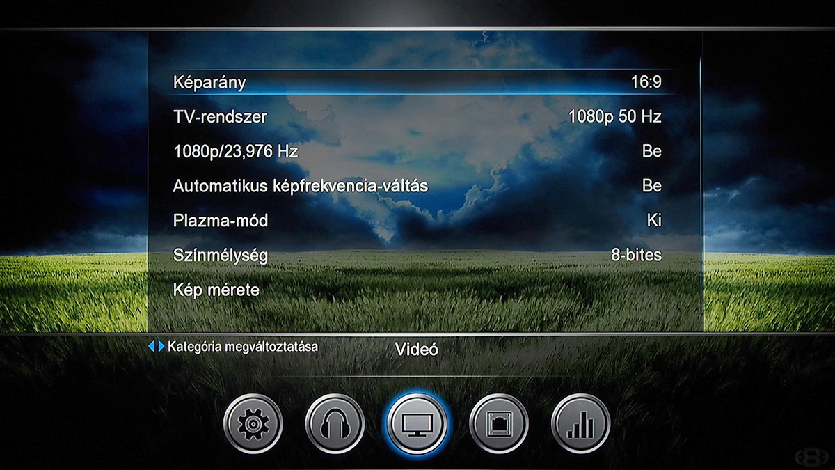 A beállítások között az egyik leglényegesebb, hogy a felület tud magyarul is. A gyártó végre javította a feliratokban a hibákat is, így a felület most már teljes értékűnek mondható. A digitális kimenet felbontása 720p, 1080i és 1080p is lehet. Természetesen a készülék az 50 és 60 Hz-es képfrissítési frekvenciák mellett a 24 Hz-et is ismeri (ha a 24p-t használni szeretnénk, akkor azt külön kell bekapcsolni), ami a nagyfelbontású tartalmak lejátszása esetén lehet nagyon hasznos. (A lejátszó a 23,976 fps képsebességű filmeket is megfelelő módon, minimális akadozásokból mentesen kezeli.) A menü opcióinak részletes felsorolásától ezúttal is eltekintünk (a képeket egyébként minden opció látszik), annyi elég, hogy szükséges beállítást megtalálunk a Mede8er MED800X3D menüjében.