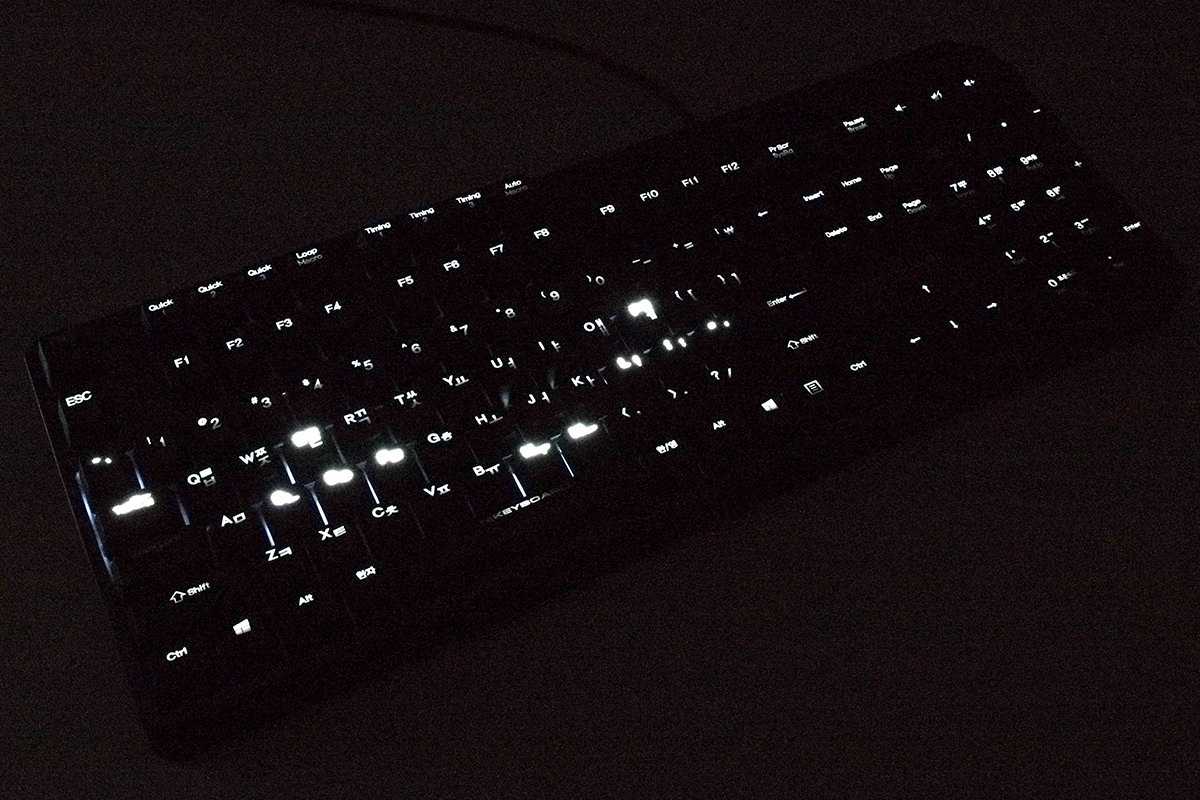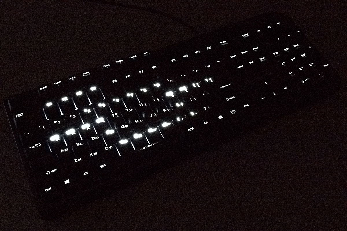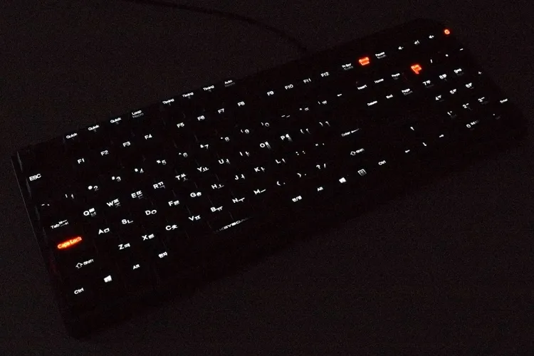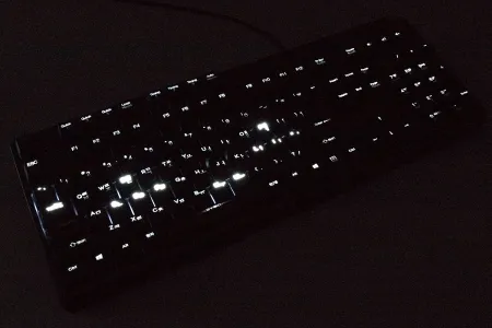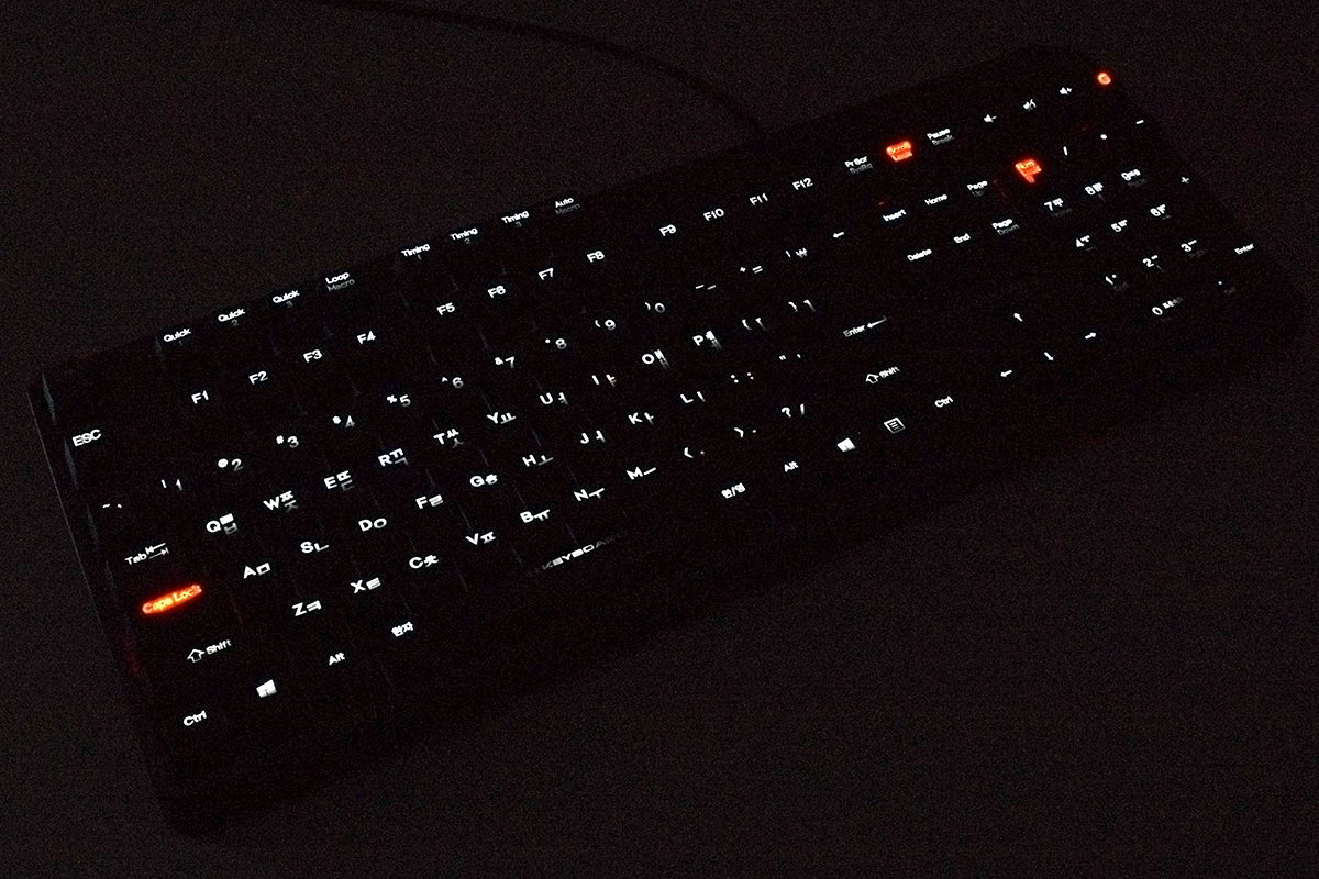 A billentyűzet első érdekessége, hogy háttérvilágítással rendelkezik, ráadásul nem is akármilyennel: paraméterezhetővel. A normál gombok fehér, a „lock” gombok pedig piros színű háttérvilágítást kaptak. Minden egyes gomb alá külön fényforrás került, így LED-ből rengeteg van – ennek köszönhető, hogy a billentyűzet nagyon nehéz, 1,29 kg-ot nyom. A háttérvilágítás fénye az Fn+F1/F2 gombokkal hét lépcsőben állítható és akár teljesen ki is kapcsolható, de a személyre szabhatóság ezzel még távolról sem ért véget!