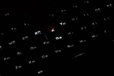 A gombok ugyanis, ha megnyomjuk őket, akkor eltérő fényerőséggel világítanak – a skála ezúttal is hétfokozatú (Fn+F3/F4), így megoldható az is, hogy gombnyomásra erősebb vagy gyengébb fénnyel reagáljon a billentyűzet. Az Fn+F5-F8 gombokkal a leütések fénymintáját állíthatjuk; a Key Touch kiválasztásával például csak a lenyomott gomb fénye változik meg, a Key Wave-et választva viszont a környező gombok is reagálnak.