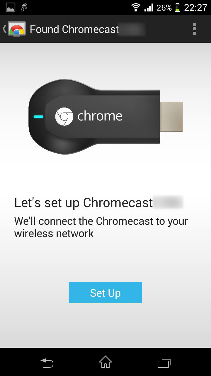 A Chromecasttal a Google egy olyan eszközt szeretett volna alkotni, amihez tényleg nem kell semmilyen számítástechnikai tudás – és ez sikerült is, a beállítás és a kezelés ennél egyszerűbb már nem is lehetne. Amikor először tápot kap a kütyü (hiszen bekapcsológomb sincsen rajta), illetve minden olyan esetben, amikor nem talál ismerős Wi-Fi hálózatot a közelben, saját hozzáférési pontot hoz létre, amelyhez okostelefonunkkal, tabletünkkel vagy noteszgépünkkel csatlakozhatunk. Persze csak miután telepítettük a megfelelő klienst (ez Androidra, iOS-re, illetve a Chrome böngésző alá érhető el). Ezután a program megkérdezi, hogy az elérhető Wi-Fi hálózatok közül melyikhez és milyen adatokkal csatlakozzon a Chromecast, és készen is vagyunk. Arra az esetre, ha több ilyen készüléket kéne beállítani egyszerre, a tévén és a telefonon kiírt kóddal tudjuk azonosítani, hogy éppen melyikkel is foglalkozunk, de persze lehetőségünk lesz saját nevet is rendelni az eszközökhöz.