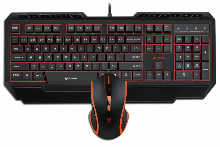 Bár a típusnévben szereplő számozás alapján arra is tippelhetnénk, hogy a V100-as a „legkisebbik testvér”, valójában ez nem teljesen így van, mivel a jelölés nem egy, hanem két terméket takar; egy billentyűzetet illetve egy egeret, amelyet szettben lehet megvásárolni. A V100-as billentyűzetére nem mechanikus gombok kerültek, de a klaviatúra így is számos érdekességet tartogat. Közülük az első az, hogy a gomboknak háttérvilágítása van, de nem is akármilyen, hanem bármilyen. Az illesztő program segítségével ugyanis nem kevesebb mint 16 millió árnyalat közül választhatjuk ki a nekünk szimpatikusat. A második érdekesség az, hogy akár az összes gombot programozhatjuk – nyilván a betűket és számokat senki nem fogja módosítani, de ha akarnánk, még ezt is megtehetnénk. Viszont ami nagyon jó, az az, hogy nemcsak leütéseket, hanem kombinációkat vagy akár makrókat is rögzíthetünk, ez rengeteg játéknál könnyítheti meg az életünket. És a programokat a V100-as klaviatúra saját memóriájában tárolja, így a kombinációk a keretprogram vagy a Windows újratelepítése után is megmaradnak. Bár a billentyűzet a játékosoknak készült, hosszabb szövegeket gépelni sem utolsó rajta. Összesen 116 gombot tartalmaz, amiben természetesen nemcsak a klasszikus gombok, hanem a multimédiás és egyéb programozható gombok is benne foglaltatnak.