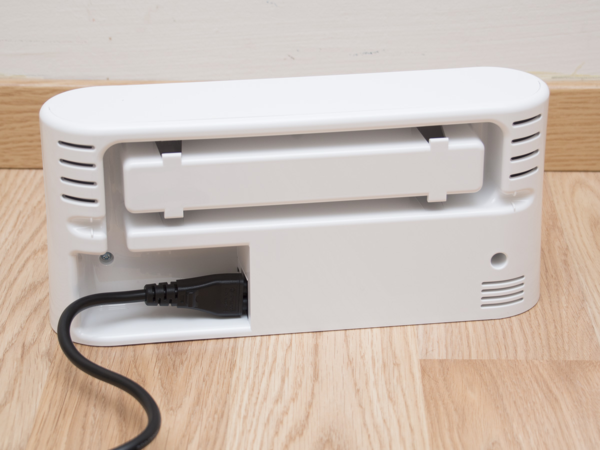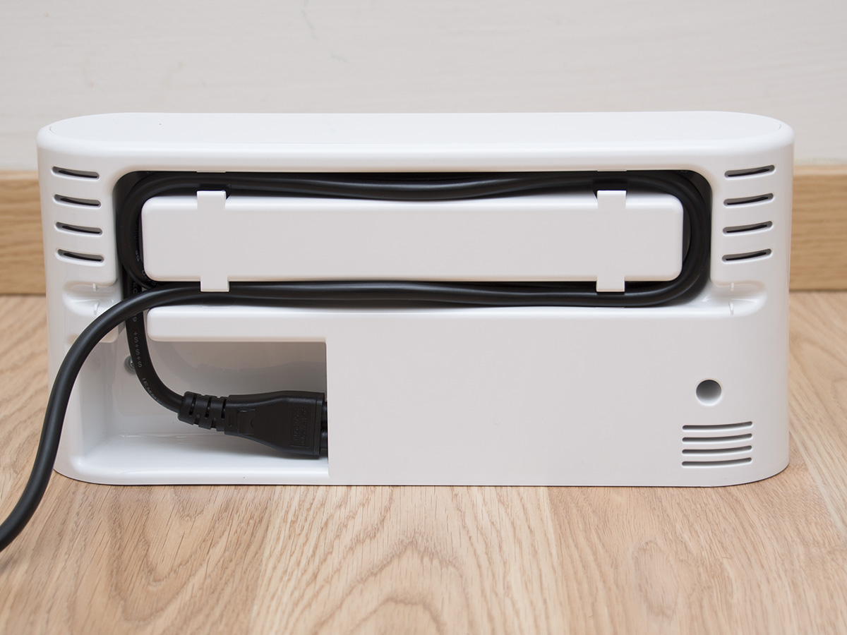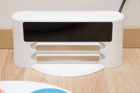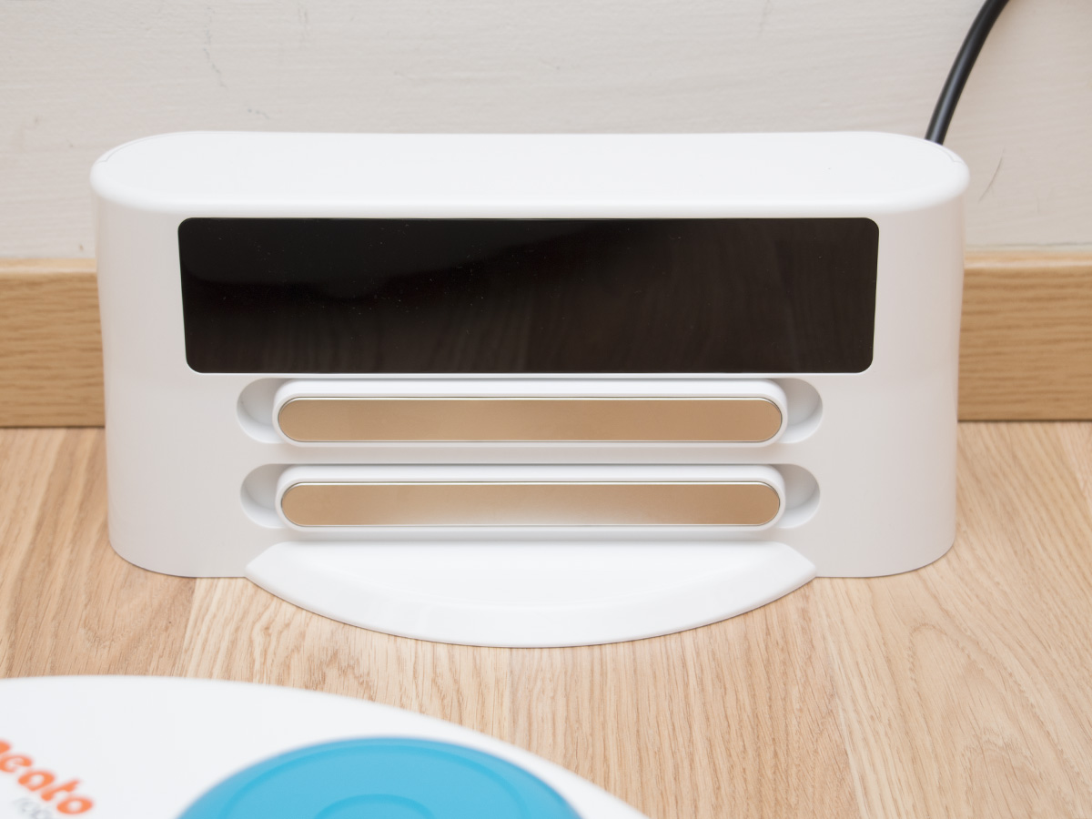 A dokkolóra ugyanaz jellemző, mint magára a robotra. Első ránézére azt mondhatnánk, hogy csak a színe változott, pedig teljesen új konstrukció, miközben működési módja valószínűleg változatlan. A stabilitást egy előre kinyúló talppal növelték, a felesleges kábel pedig a burkolat levétele nélkül feltekerhető és tárolható. Fontos észrevenni, hogy a korábbi külső tápegység beépítésre került, így egyrészt azzal nem kell bajlódni, másrészt külön tápegységgel nem lehet tölteni a robotot. Ezeket nyugodtan besorolhatjuk a pozitív változások sorába.