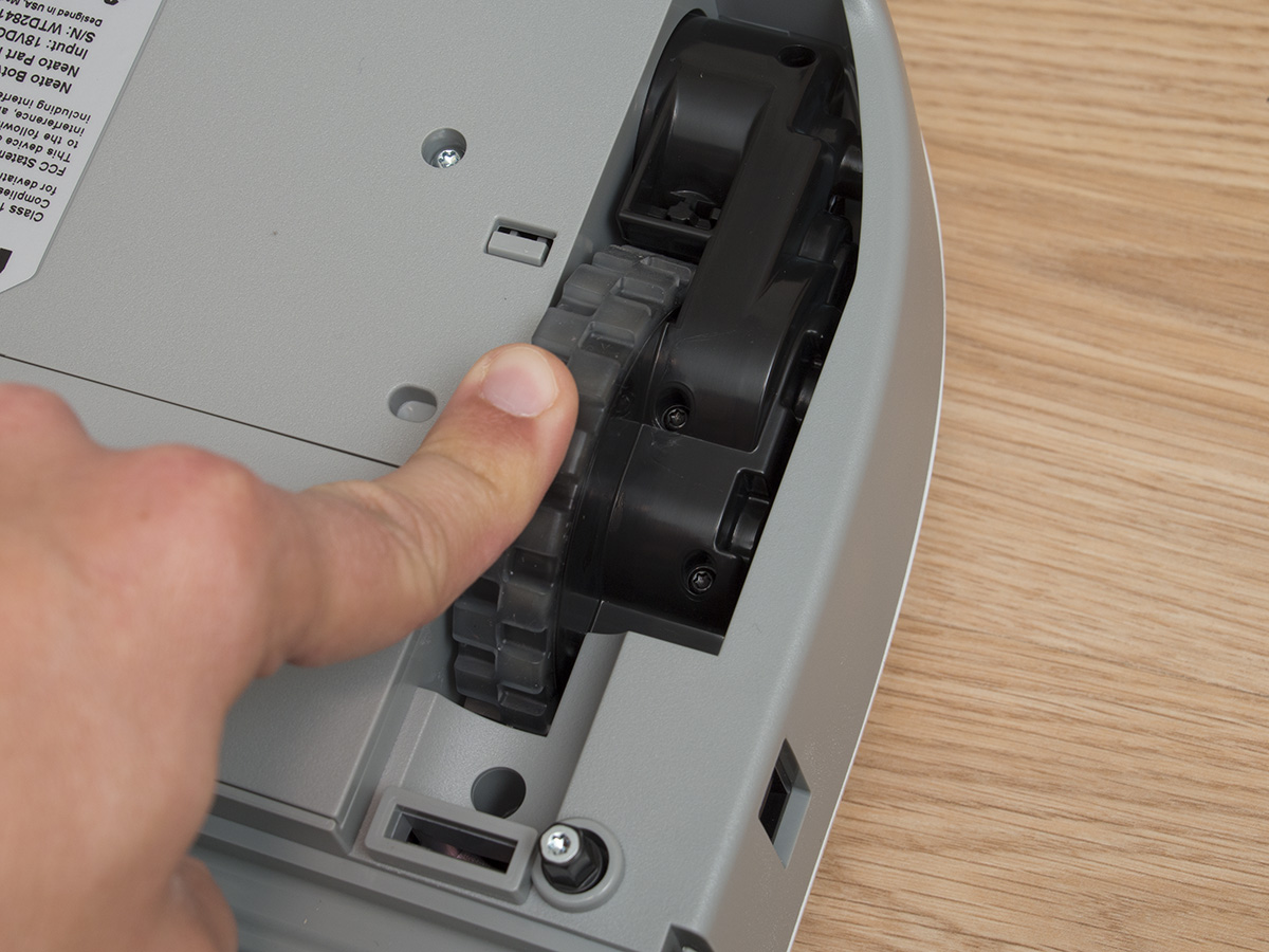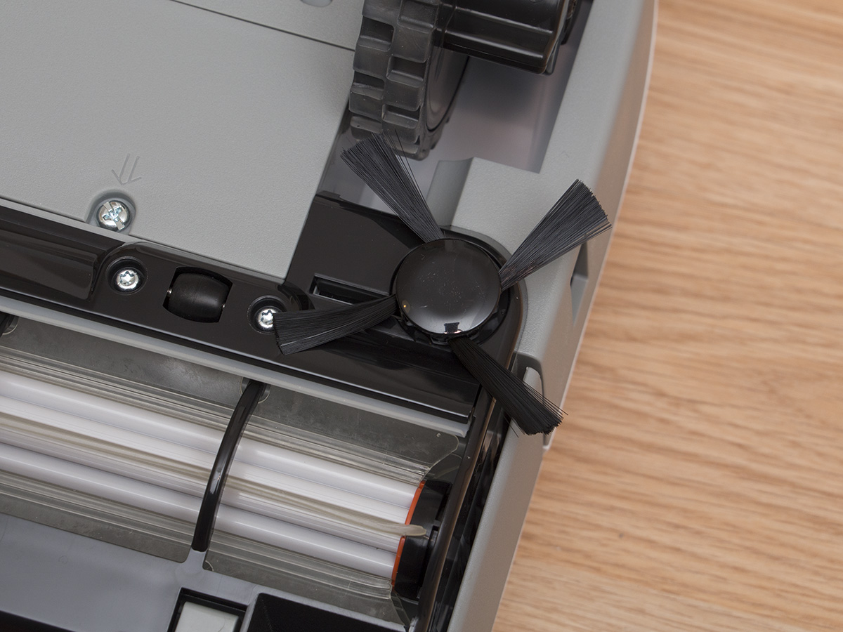 A robot aljának felépítése a szokásos sémát követi, de azért akad bőven változás. Sőt, a legfontosabb, legtöbb Neato tulaj által várt módosítás is itt látszik igazán. Ez pedig az oldalkefe, ami a fal és bútorok mellett haladó robotnak segít a kosz és szemét begyűjtésében. A kefe négy csomóban tartalmazza a meglehetősen rövid sörtéket, és érdekes módon nem a kefés henger elé, hanem mögé került. A kefét mágnes tartja a helyén, így akár szerszám nélkül is levehető.
