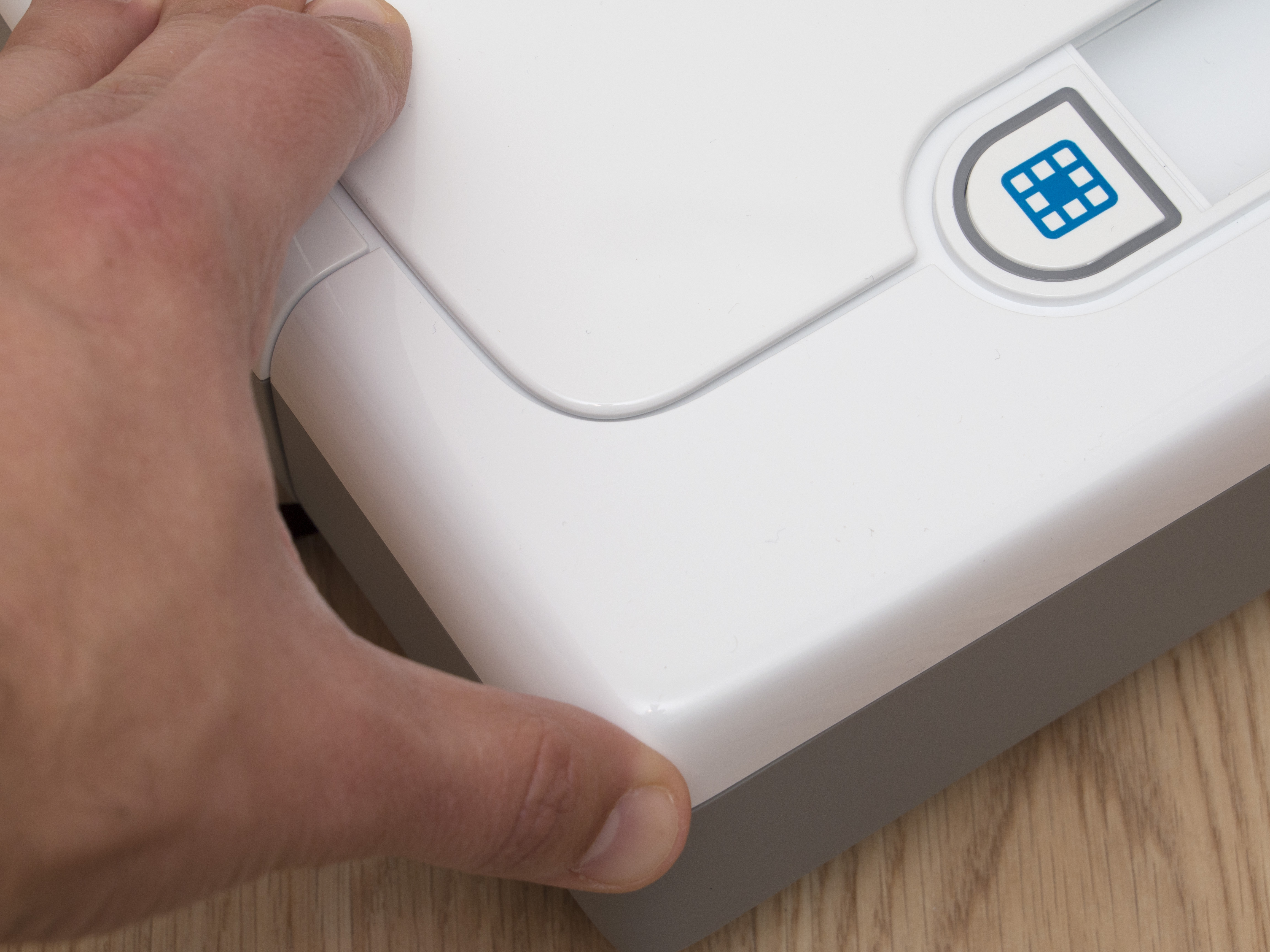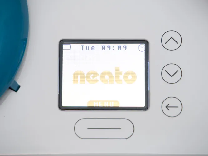 Érdekes módon szakítottak az egyértelmű kezeléssel. Az előd modellen a START feliratú gomb egyértelműen jelezte, hogy mivel kell a robotot munkára fogni, de a Botvac robotokra ilyen már nem került. Helyette az ütköző mögött kialakított kapaszkodó (aminél fogva a robot felemelhető) két oldalára tettek egy-egy gombot, amelyeket szöveg helyett piktogramok díszítenek. Szemből nézve a jobb oldali házat szimbolizáló ikon nem a házba vagy dokkolóba való visszatérést, hanem a ház takarítást akarja jelenteni, mígy a közepén kiszínezett négyzethálós füzet a szpot takarítási módot aktiválja. Zavaros? Szerintünk nagyon. A ház gombot egyébként viágító csík szegélyezi, így sötétben is jól látható, és egyben ennek villogása adja az akkumulátor töltésének visszajelző fényét is.