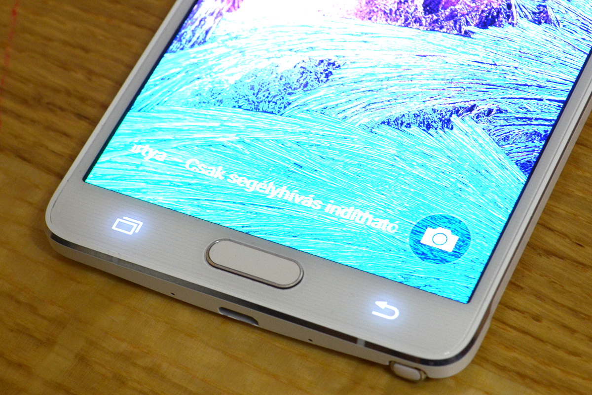 A fizikai gomb ujjlenyomat-olvasót is tartalmaz, ez a Galaxy S5 óta a csúcskategóriás Samsungokból kihagyhatatlan. A teljes előlapot strapabíró üveglap borítja: a Samsung a Gorilla Glass 4 mellett tette le a voksát a Note 4-nél.