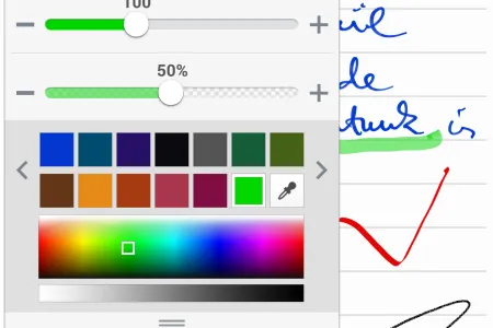 A jegyzeteléshez többféle alkalmazás is rendelkezésre áll (S Note, Scrapbook), és mindben számos előre definiált séma várja, hogy használjuk őket. Jegyzetelésnél a készülék a kézírást is felismeri. A toll nemcsak a nyomásérzékeny funkciója miatt használható jól, hanem azért is, mert a Galaxy Note 4 szoftvere többféle íróeszközt tud szimulálni, az egyszerű ceruzával és tollal kezdve a kiemelő filcen át a tust vagy akár ecseteket is. És persze a szín is szabadon választható, és kapunk egy sor szerkesztési segédletet is, mondjuk egyenes vonalak létrehozásához.