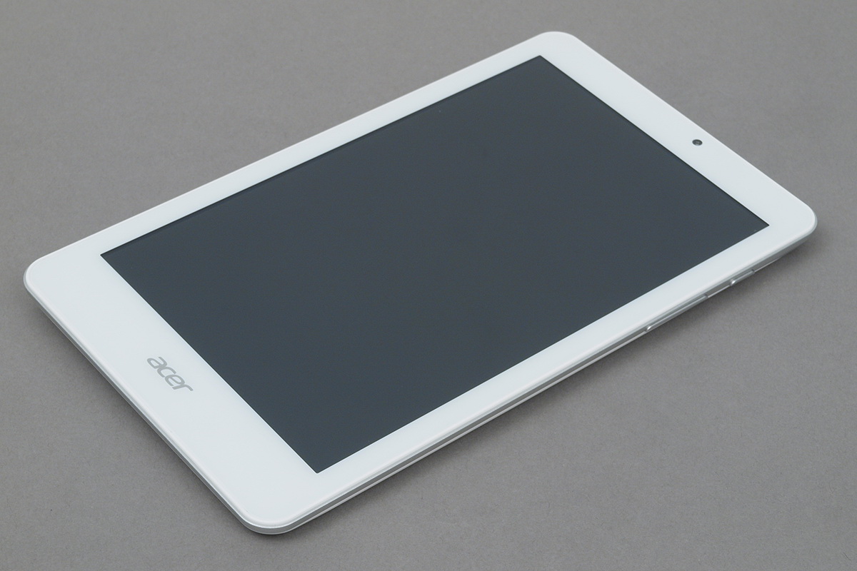 Az Iconia Tab 8 W (teljes nevén Acer Iconia Tab 8 W1-810) teljesen átlagos külsővel rendelkezik, egyedül talán a fehér színű borítás az, amely kiemeli kicsit a népes mezőnyből. A tablet első és hátsó része is fehér, a készülék oldalán azonban ezüstszínű csík fut körbe, amely hátul, a kamera felőli rövidebbik oldalán kicsit kiszélesedik. Az előlap természetesen fényes, viszont mivel a felület fehér, ezért az ujjlenyomatok szinte egyáltalán nem is látszanak rajta – persze ki a kijelző éppen ki van kapcsolva, akkor azért minden szennyeződés szépen kivehető. Az Acer mérnökei túl sokat nem gondolkodtak azon, hogy milyen anyagokat válasszanak: minden polikarbonát (vagyis műanyag), viszont a tablet mégsem tűnik olcsónak, részben azért, mert az összeszerelés kifogástalan. Emellett az is sokat számít, hogy a hátlap nem sima felületű, hanem textúrázott, még ha a választott minta talán nem is nevezhető a legjobbnak.