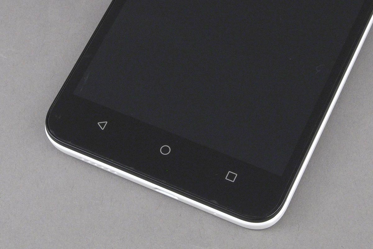 Nem sok jót jelent az előlapi üveg karcállóságára vonatkozóan, hogy a nálunk járt tesztpéldány előlapján már gyárilag el volt helyezve egy fólia – és valóban, a specifikáció egy szóval sem említi, hogy karcmentes, netán Gorilla Glass üvegről lenne szó. A kijelző felett ezúttal is a szokásos kellékeket találjuk, így az előlapi kamerát, a beszédhangszórót és a szenzorokat. Utóbbiak helyét a fólián lévő extra nyílás árulja el egyébként. Ami elsőre nem látszik, az az, hogy van még egy visszajelző LED is, mégpedig a bal felső sarokban. A Honor telefonoktól megszokott módon márkajelzés ezen a részen nincsen. Lent a panel alatt az Android 5.0-val megjelent új piktogramok (háromszög, kör és négyzet) jelzik az érintőgombok helyeit, ezek természetesen a vissza, Home és feladatkezelő funkciókat látják el. Azon lehet vitatkozni, hogy a hardveres vagy a szoftveres gombok a jobbak, de véleményünk szerint a dolognak nincs jelentősége, ha az érzékenység megfelelő (és ennél a mobilnál az).