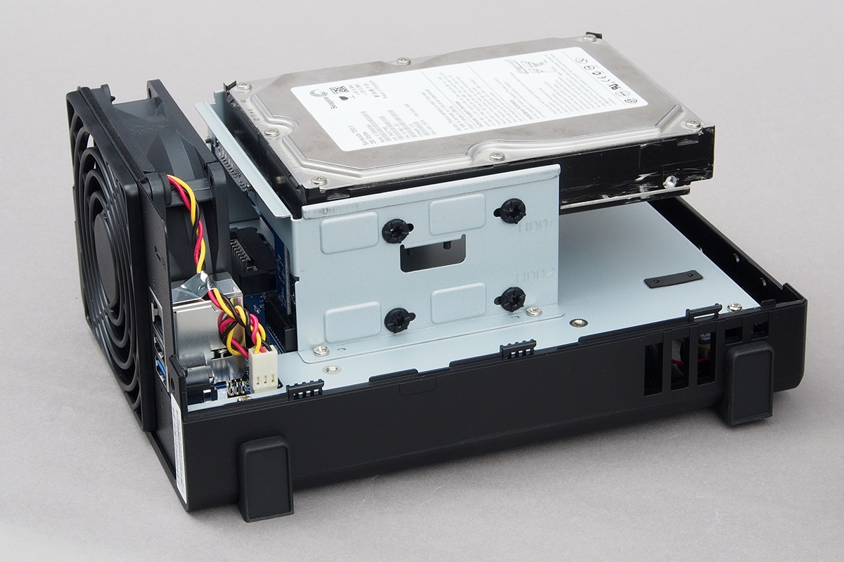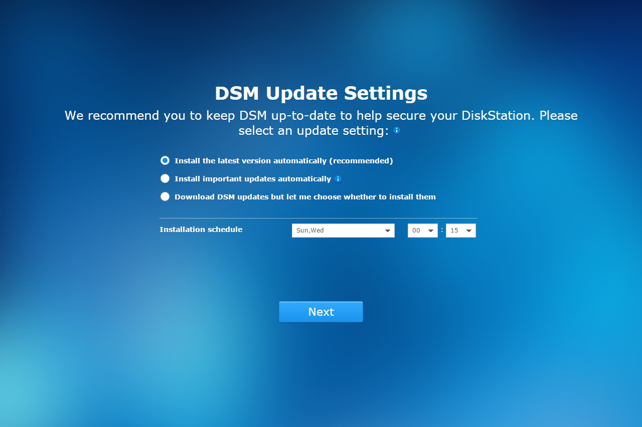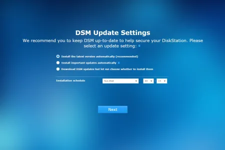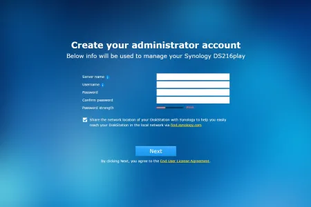 A Synology DS216play belső felépítése nincsen túlbonyolítva, a HDD-k beszereléséhez például csak az oldalsó rész eltávolítására, négy csavarra, egy csavarhúzóra és kb. 2 percre van szükség. A kialakításból adódóan 3,5 colos illetve 2,5 colos meghajtókat is használhatunk, viszont zajcsillapítást csak 3,5 colos HDD-k beszerelésekor kapunk. Jó Synology szokás szerint a DS216play sem rendelkezik saját tárhellyel, így a Disk Station Manager aktuális verzióját a netről kell letöltenünk, és kézzel kell feltelepíteni. Ettől persze túlságosan nem kell megijedni, mivel a download.synology.com weboldalon minden ehhez szükséges fájlt megtalálunk: a Synology Assistant szoftver, ami megkeresi a NAS-t a hálózaton, és felajánlat az első telepítést, valamint a DSM-ből a legfrissebb szoftvert, ami jelenleg az 5.2-es változat. A módszer mellett szól, hogy így teljesen biztos, hogy a vásárló a legfrissebb operációs rendszert kapja, függetlenül attól, hogy a megvásárolt terméket hónapokkal korábban vagy csak pár napja gyártották. Maga a telepítés gyors, kb. 10 percet vesz igénybe. Ha a szoftver végzett, akkor egy varázsló segít végigszaladni az alapvető beállításokon: belépési név és jelszó, DSM frissítési beállítások, QuickConnect fiók és bővítmények telepítése.