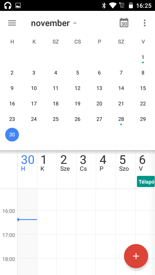 A naptár is majdnem a gyári Google – vele kapcsolatban annyi az extra, hogy a napi, heti és havi nézet mellé még egy háromnapos nézetet is támogat, szerintünk az alacsony felbontású kijelzőhöz ez illeszkedik a legjobban.