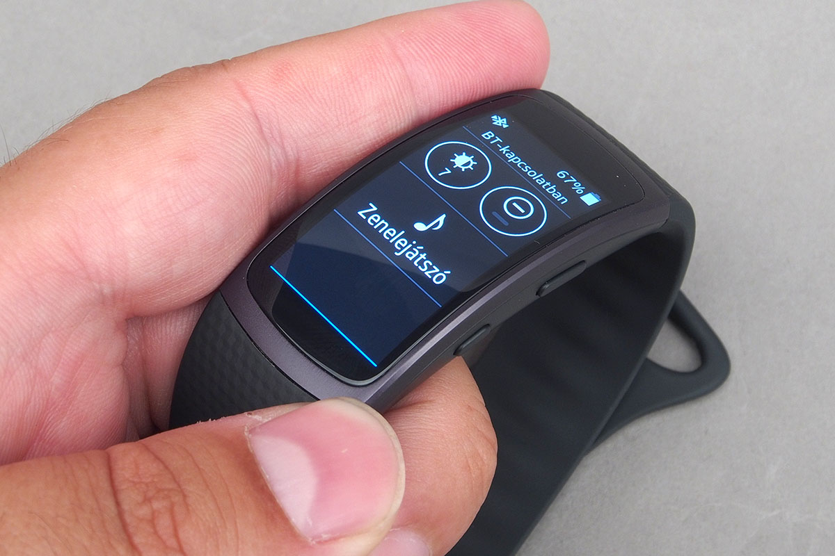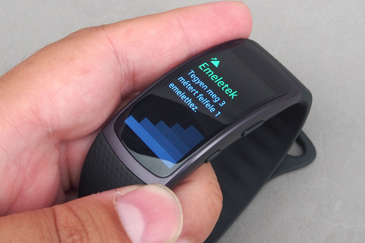 Amit fontos még tudni, az az, hogy a Samsung Gear Fit 2 nem okosóra, elsősorban a fitnesz funkciókhoz készítették; persze néhány hasznos trükköt tud, a hívásokat lehet vele fogadni, és a legtöbb üzenet is megjelenik a kijelzőjén, de olyan sokszínű felhasználási módot, mint amit egy androidos okosóra nyújtani tud, ne várjunk tőle. Az SMS-ekre mondjuk lehet válaszolni, ha van a repertoárban olyan előre megírt üzenet, ami éppen passzol (sémákat a telefonon magunk is írhatunk). Ami viszont mindenképpen plusz, az az, hogy a 4 GB-os tárhelyre (vagy inkább a belőle szabad kb. 2 GB-nyi helyre) felmásolhatjuk kedvenc zenéinket, és egy Bluetooth fülessel párosítva a karkötőt, hallgathatunk zenét futás közben. Itt azért jár plusz pont a Samsung Gear Fit 2-nek, mert a kütyü képes arra, hogy a zenék közül kiválassza azt, ami az adott mozgás intenzitásához passzol, így nem kell amiatt aggódni, hogy a zene üteme önkéntelenül is befolyásolná a gyakorlatozást.