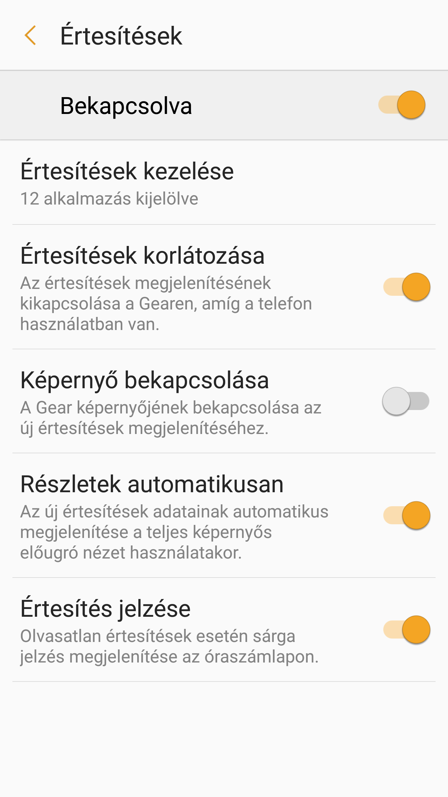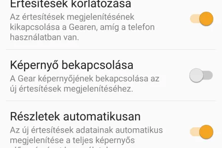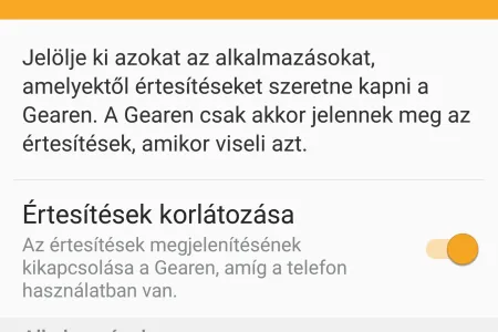 A Gear Fit 2 és a telefon párosításához ezúttal is a Samsung Gear alkalmazásra lesz szükség, amely – ha a két kütyüt egymás mellé tesszük – akkor automatikusan felismeri a Gear Fit 2-t és felkínálja a csatlakozást hozzá. De persze indíthatunk kézi keresést is. Ha a Bluetooth nincs bekapcsolva, akkor a Gear alkalmazás gondoskodik annak aktiválásáról is. Az órán megjelenik egy azonosító, hogy a telefonnal ki tudjuk választani, melyik Gear Fit 2-höz szeretnénk kapcsolódni. Nyilván ennek elsősorban akkor van létjogosultsága, ha több kütyü is van a családban. A párosítás után a telefon ellenőrzi az óra szoftverét, frissíti ha szükséges, és elindítja a konfigurációs varázslót is, amivel többek között azt állíthatjuk be, hogy a Gear Fit 2-re mely alkalmazások küldhetnek értesítést. A teszttelefonon lévő 29 programból 12 kapott automatikusan jogot.