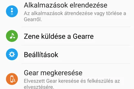 A Gear alkalmazással elérhető beállításokon érdemes végigszaladni, mivel rengeteg dolgot tudunk megváltoztatni. Választhatunk számlapot (amelyek az idő mellett valamilyen extrát is tudnak sok esetben, jellemzően valamilyen információt tudnak folyamatosan mutatni), megadhatjuk hogy mi történjék az értesítéseknél, megváltoztathatjuk az alkalmazások sorrendjét (mindig az lehet felül, amit mi szeretnénk), és küldhetünk zenét is a Gear Fit 2-re. Van persze keresés funkció is, ami viszont csak csendes környezetben használható, mert a Gear Fit 2-ben sincsen mikrofon, így a rezgést kell meghallanunk.