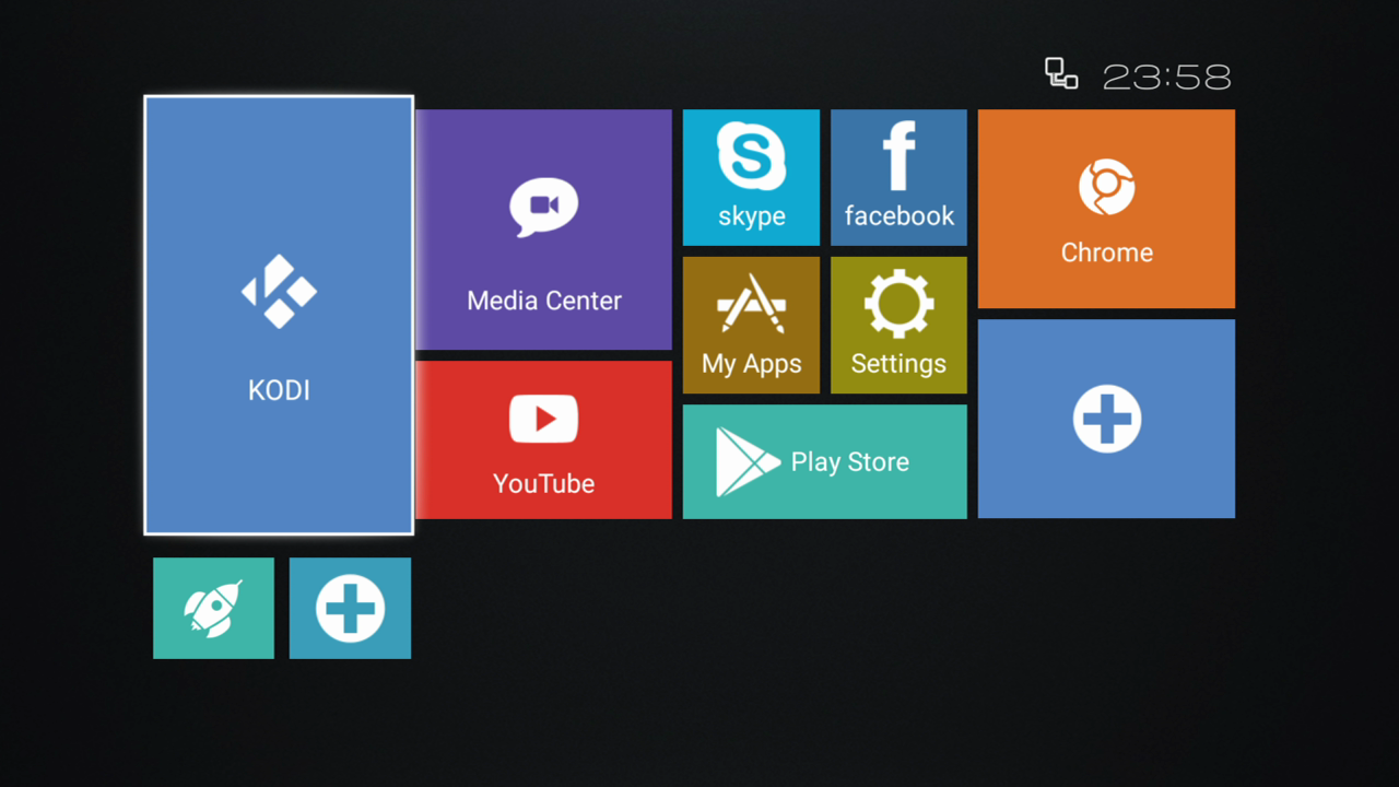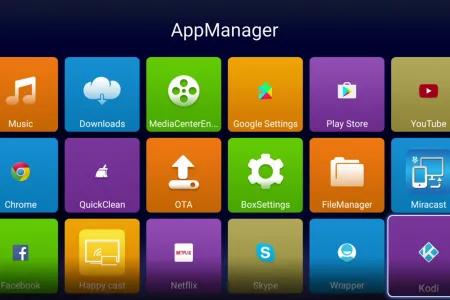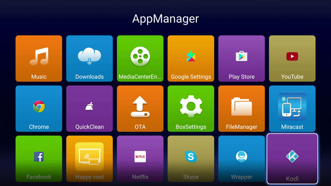 Az alap programválaszték nem túl bő, de ez így is van rendjén, hiszen így mindenki kedvenc alkalmazását használhatja. Amiből választhatunk: Kodi, MediaCenter, YouTube, Chrome, FileManager, MiraCast/HappyCast, Facebook, Netflix, Skype. A két „cast” segítségével arra van mód, hogy a lejátszó képét más eszközre streameljük, vagy fordítva.