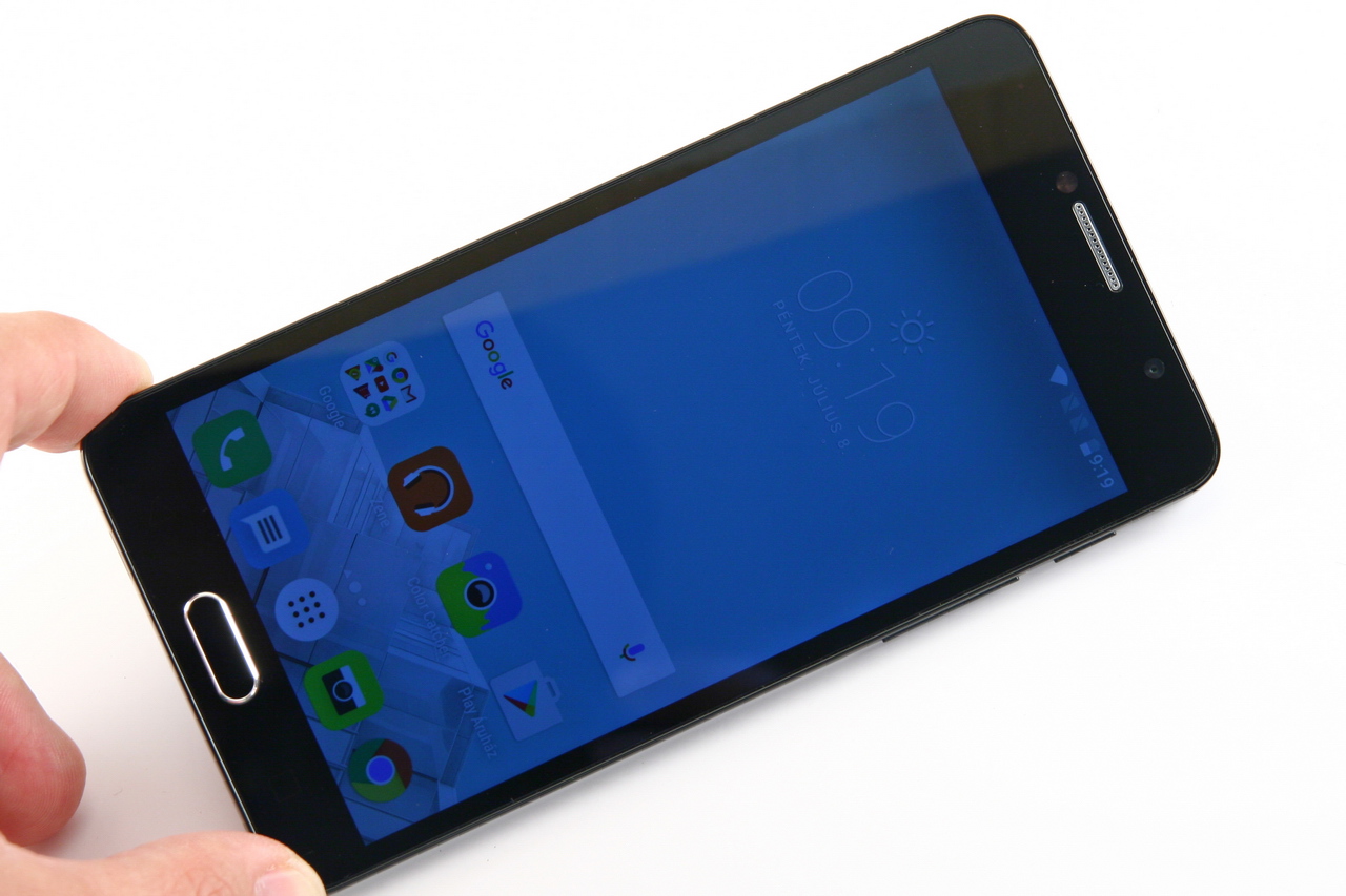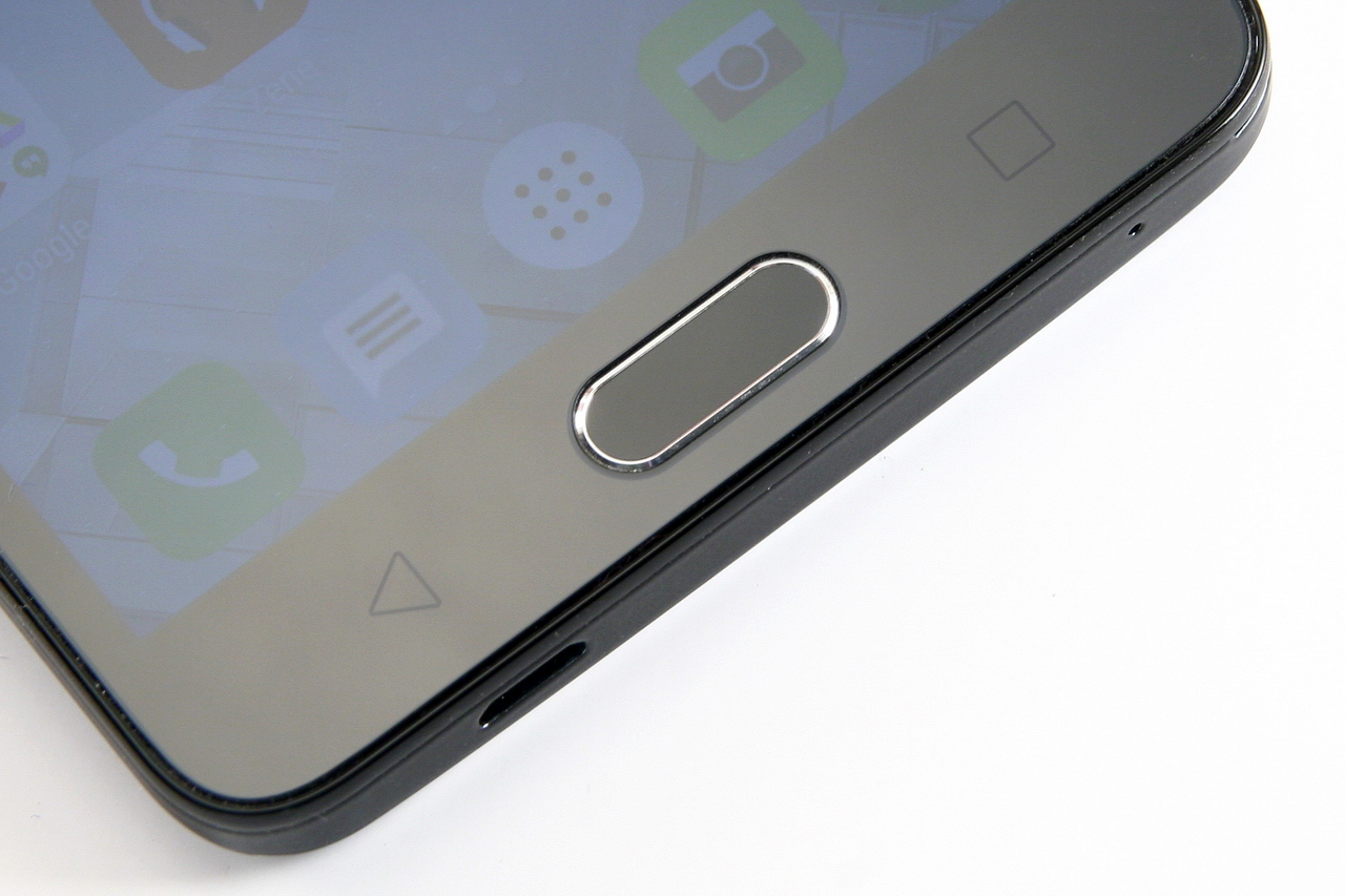 Az előlapnak mintegy 71 százalékát uralja a kijelző. Felül egy 5 megapixeles frontkamerát helyeztek el a tervezők, melynek révén maximum 5 megapixeles felbontású szelfik készíthetők. A 84,4 fokos látószögű fényleső nemcsak HDR funkciót és arcszépítést kapott, hanem egy teljes értékű LED-segédfényt is, vagyis a rossz fényviszonyok melletti önarckép készítésnek sincs akadálya. A kijelző alatti szekciót a középső nyomógomb dominálja, mely krómkeretes készség közepében egy közepes sebességű ujjlenyomat szenzor található. Maximum öt ujj adatainak tárolására van lehetőség, és ujjlenyomataink révén nemcsak feloldható a telefon, hanem a különböző ujjaink segítségével különböző alkalmazások is villámgyorsan elindíthatók. A nyomógomb két oldalán egy-egy háttérvilágításos érintőgomb van.