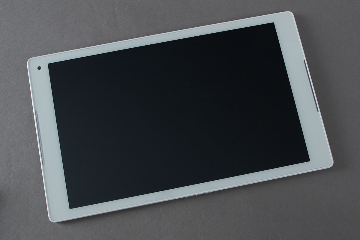 Az előlapon a bal felső sarokban elhelyezett előlapi kamerára lehetünk figyelmesek és arra, hogy hangszóróból kettő is van – vagyis minden adott ahhoz, hogy kedvenc zenéinket sztereoban hallgassuk. A két apróság annyira nagy élményt azért nem tud nyújtani, de nem követünk el szentségtörést akkor sem, ha egy közepes méretű szobában vetjük be.