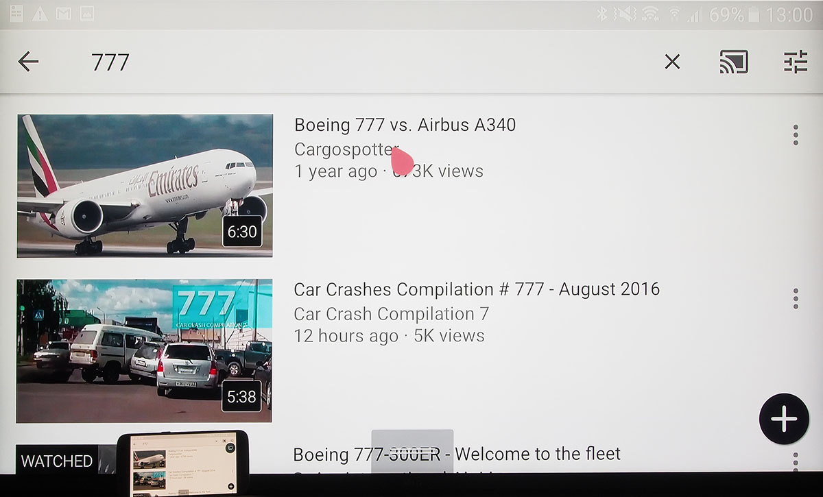 Ha a kapcsolat létrejött, a tévé képernyőjének jobb felső részén megjelenik a telefonon beállított név – erre kell kattintani, ha a „telefonos” kezdőképernyőt szeretnék elérni. A Magic Mobile Connection használatával egyszerre akár öten is csatlakozhatnak a tévéhez. A képernyő felső részén az alkalmazások, lent pedig a multimédiás tartalmak jelennek meg. Alapesetben csak pár szoftver látszik, de a „Hozzáadás” gombbal szabadon bővíthetjük a kínálatot. És itt jön az a rész, amely miatt az LG TV Plus nem csak egy egyszerű képernyő tükrözési megoldás: nemcsak a telefon kommunikál a tévével, hanem a tévé is a mobillal, így a Magic Motion Remote távirányítót használhatjuk a telefon „nyomkodására” az ujjunk helyett (a tévékkel ez egyébként „sima” MiraCast csatlakozás esetén is működik). A mobilt nyugodtan lerakhatjuk akár a tévé mellé tölteni is.
