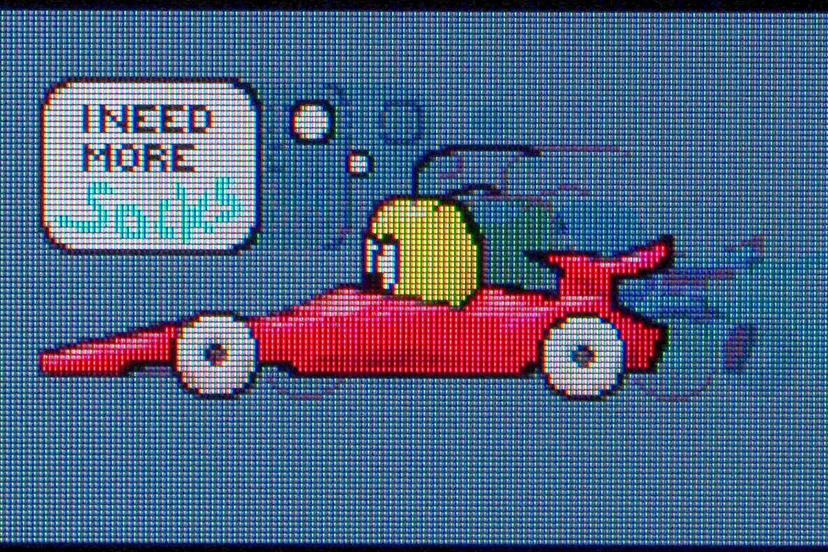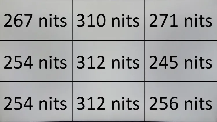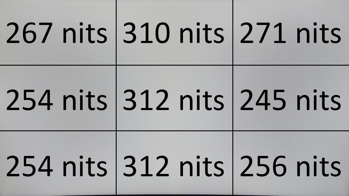 Ez ugyanis nem feltétlenül csak a tesztábrákkal látszik, a stadionos képen a lelátónál is jól kivehető, hogy egyes területeken kisebb a fényerő – jóllehet, aki nem, tudja, hogy mit kell nézni, az nem biztos, hogy észreveszi a dolgot.