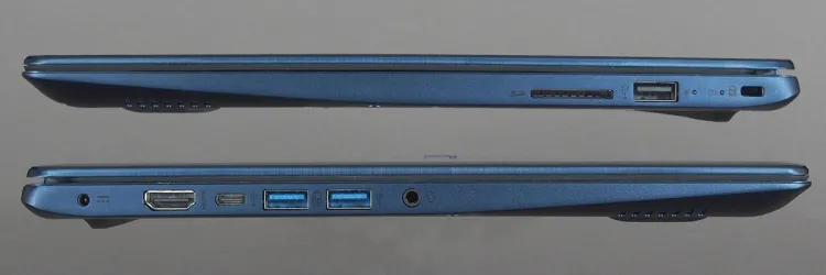 A gép 338×234×17,95 mm-es, és 1,56 kg-ot nyom, ami nem kevés, de cserébe a kijelző is nagyobb az átlagosnál, 14 colos.